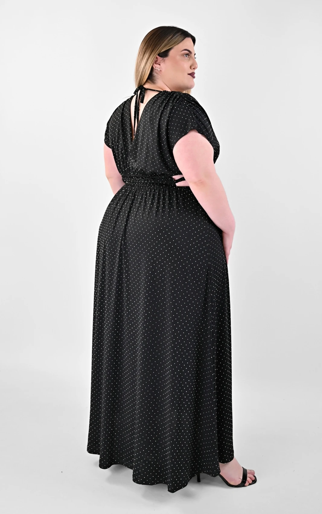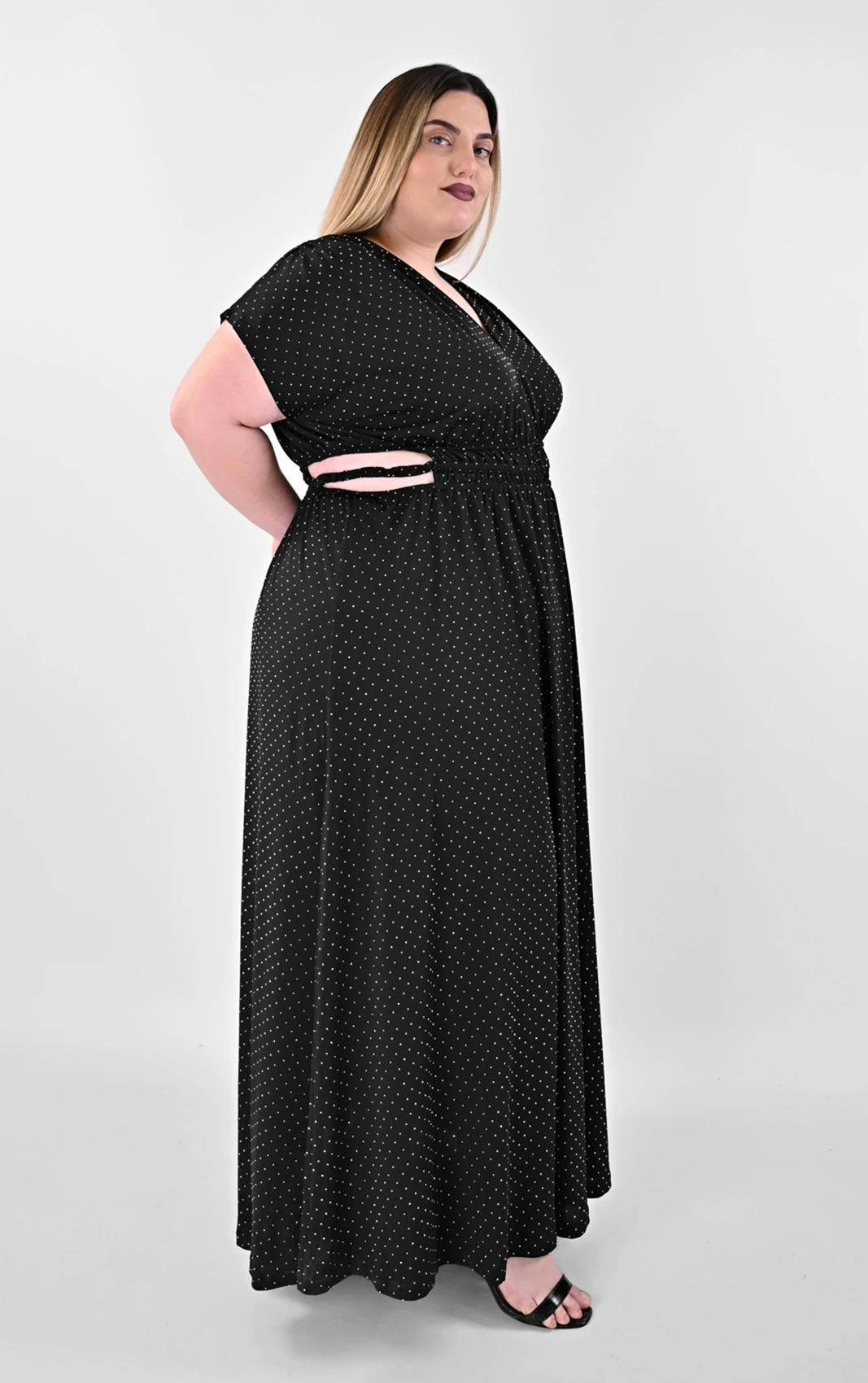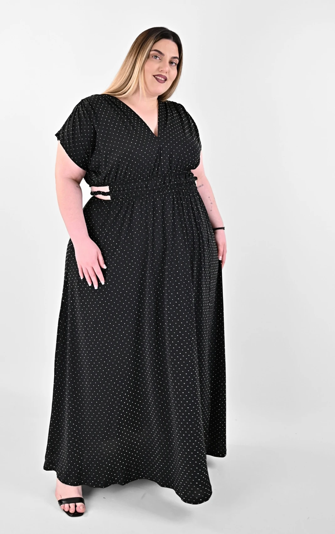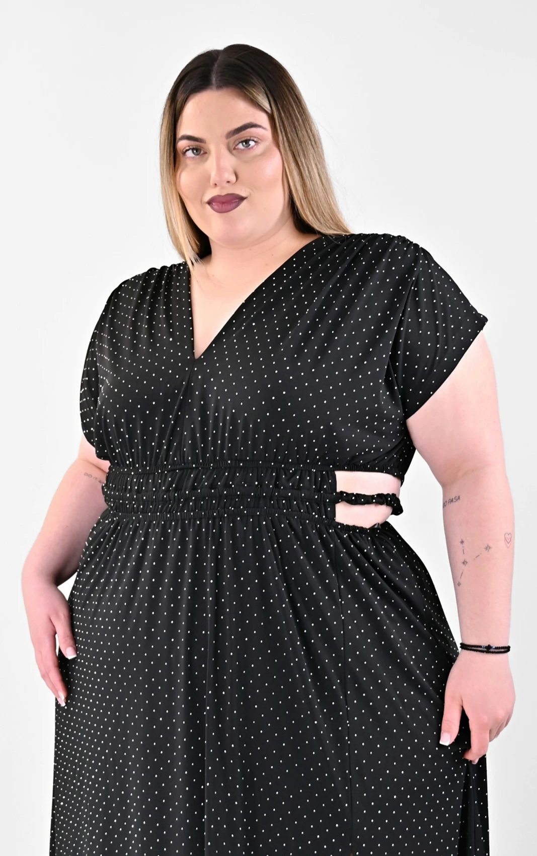 Μάξι Μαύρο Φόρεμα Cut Out με Στρας
