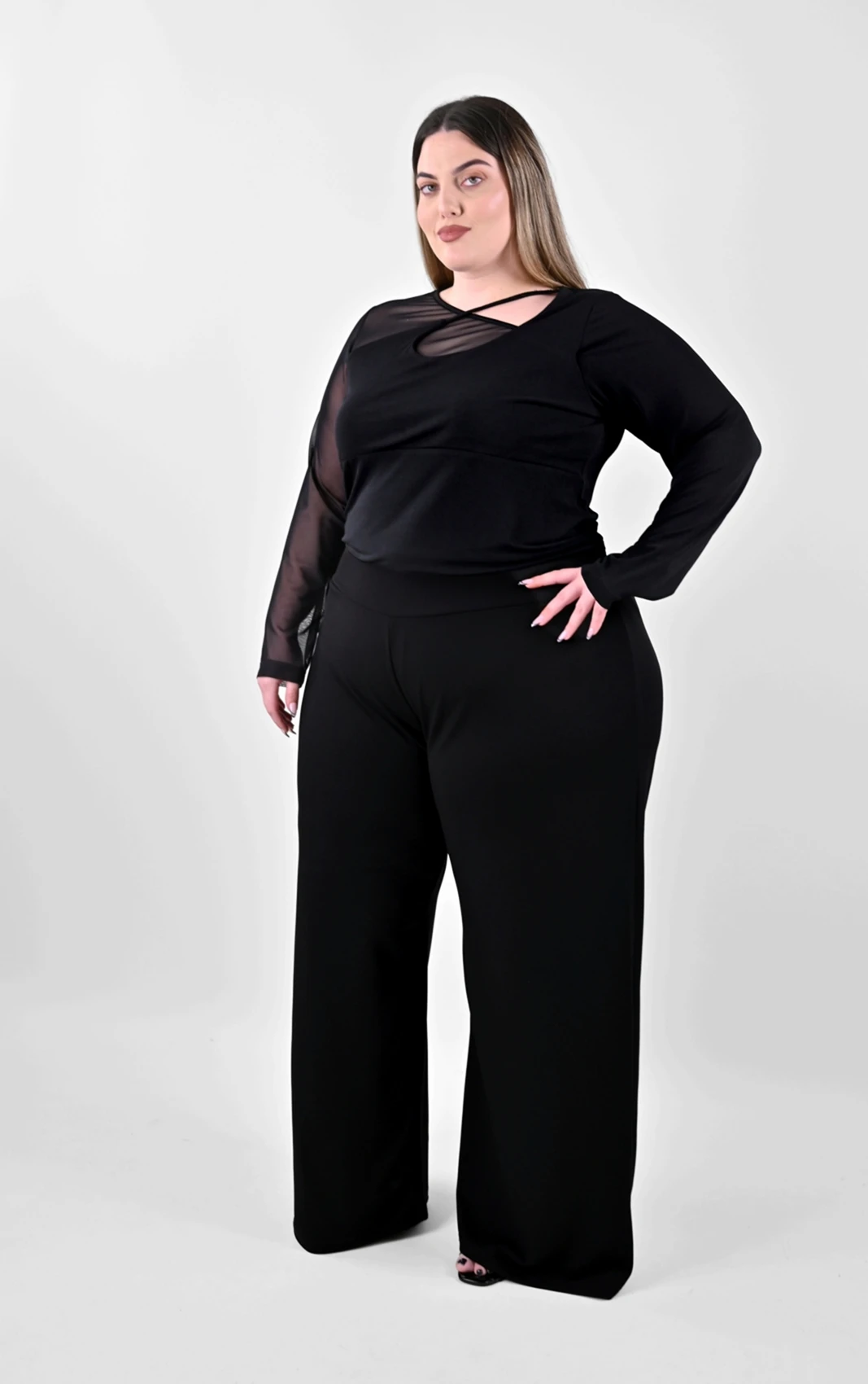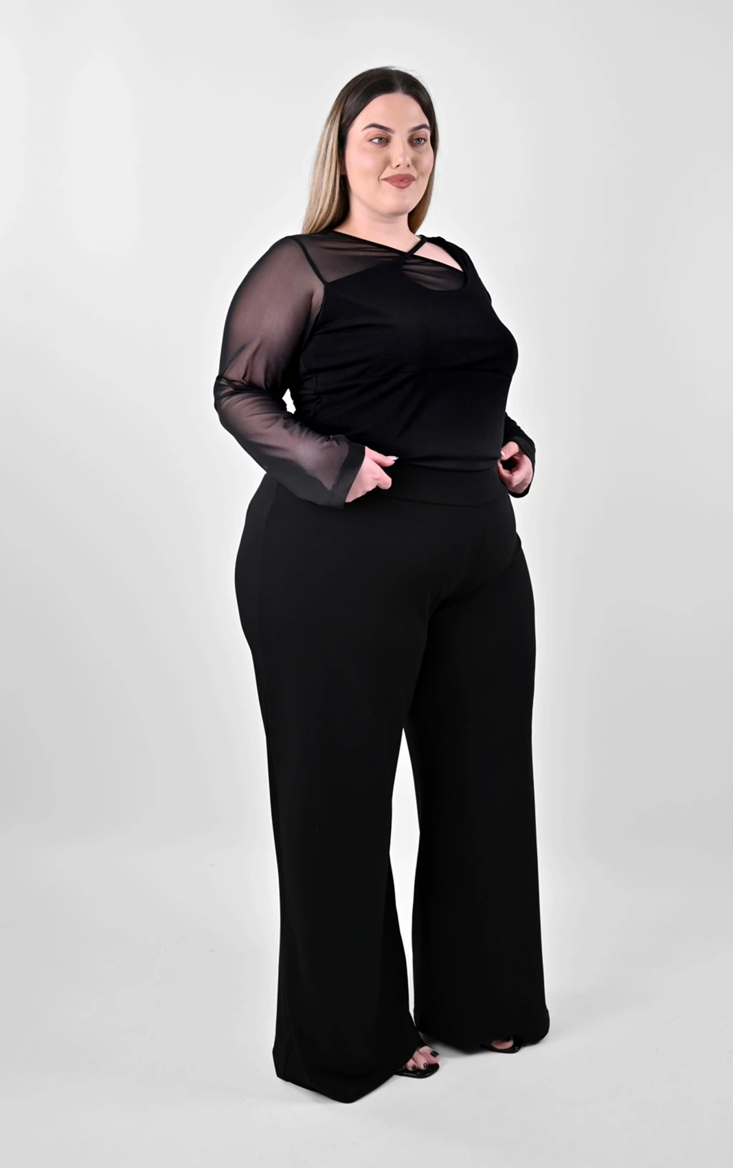 Αυτή η plus size μαύρη παντελόνα είναι το απόλυτο βασικό κομμάτι που συνδυάζει την απόλυτη άνεση με το μοντέρνο στυλ. Είναι φτιαγμένη από ένα ποιοτικό ύφασμα με εξαιρετική ελαστικότητα και υπέροχη, μαλακή αίσθηση.