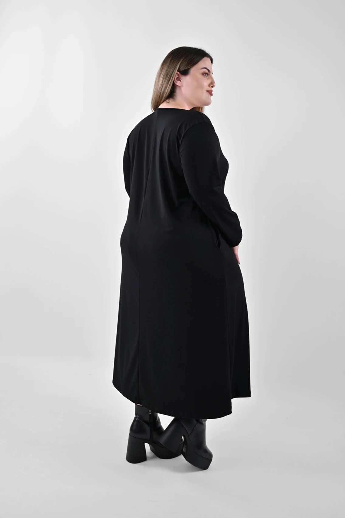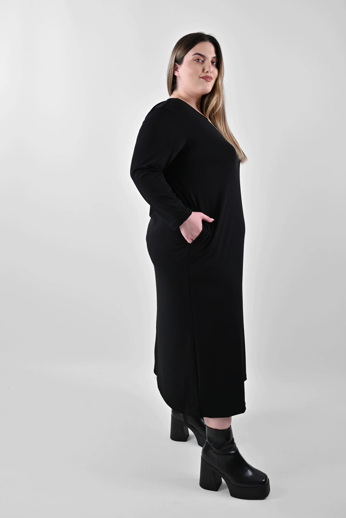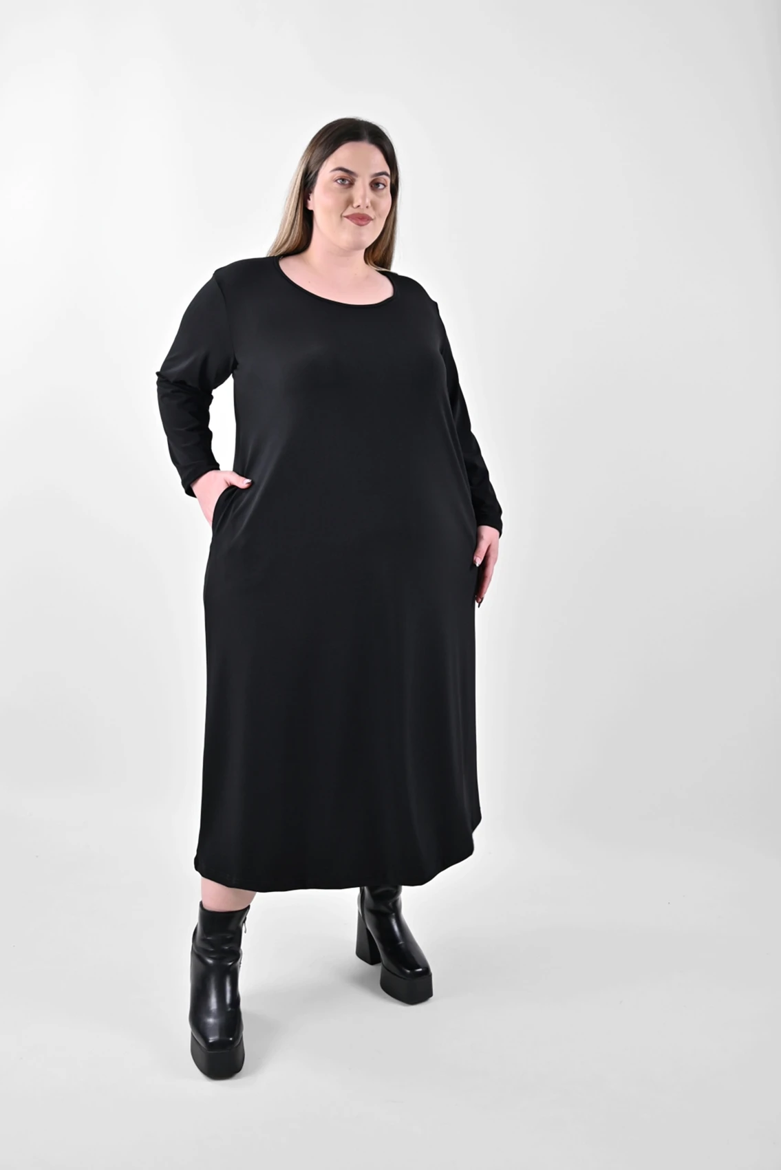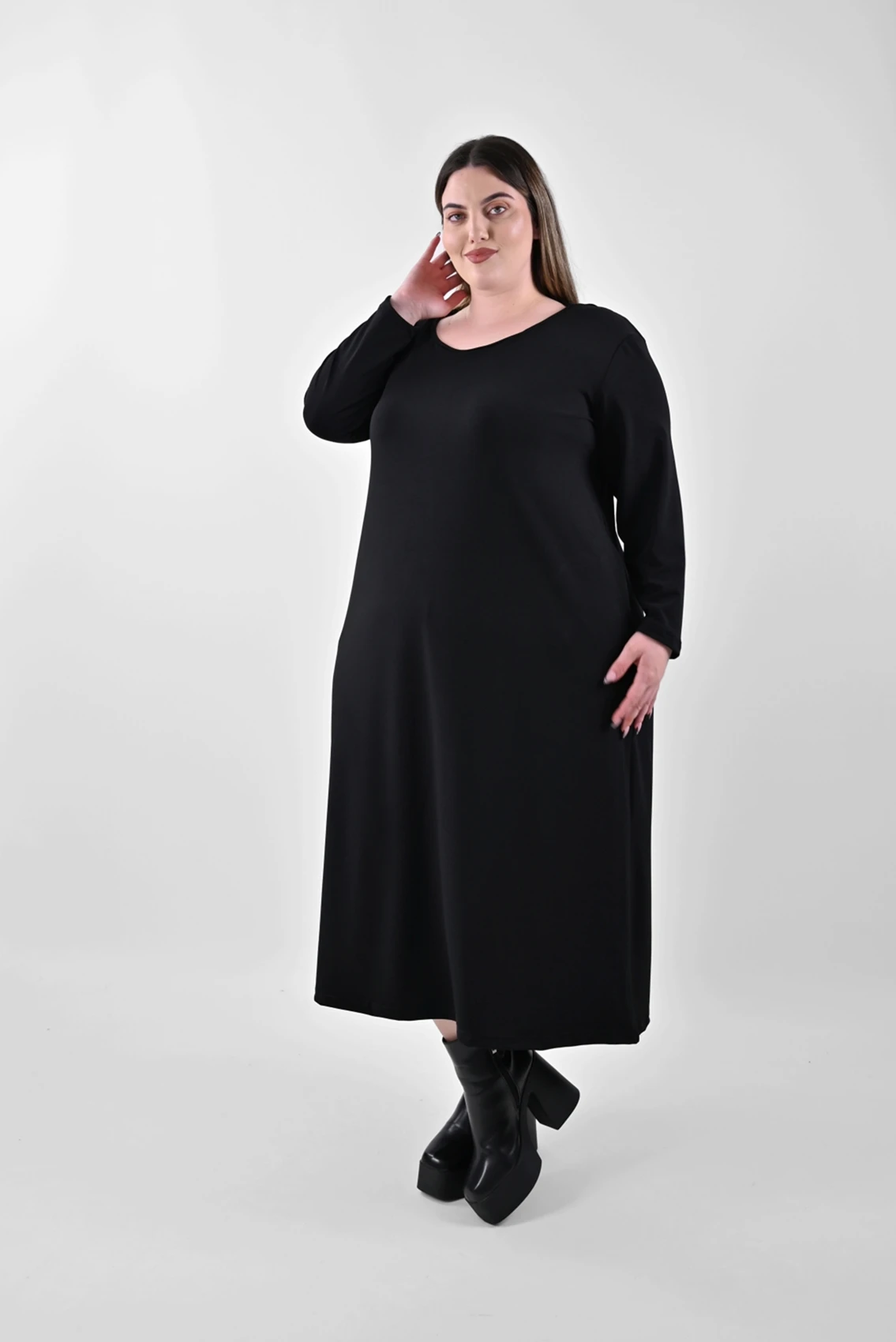 Αυτό το plus size μαύρο φόρεμα είναι το απόλυτο βασικό κομμάτι που συνδυάζει την άνεση με το μοντέρνο στυλ. Είναι το φόρεμα που θα σας λύσει τα χέρια σε κάθε περίσταση.