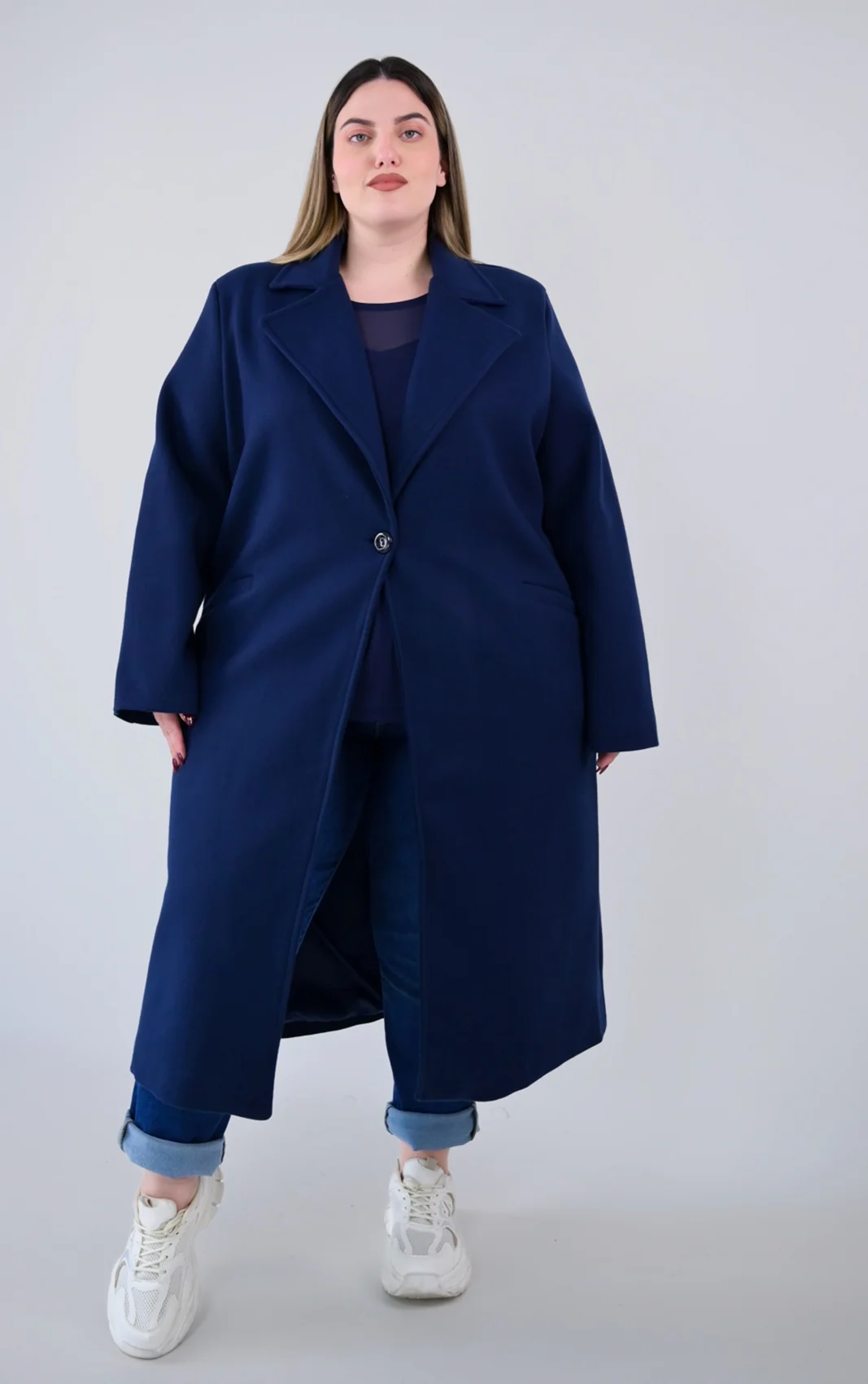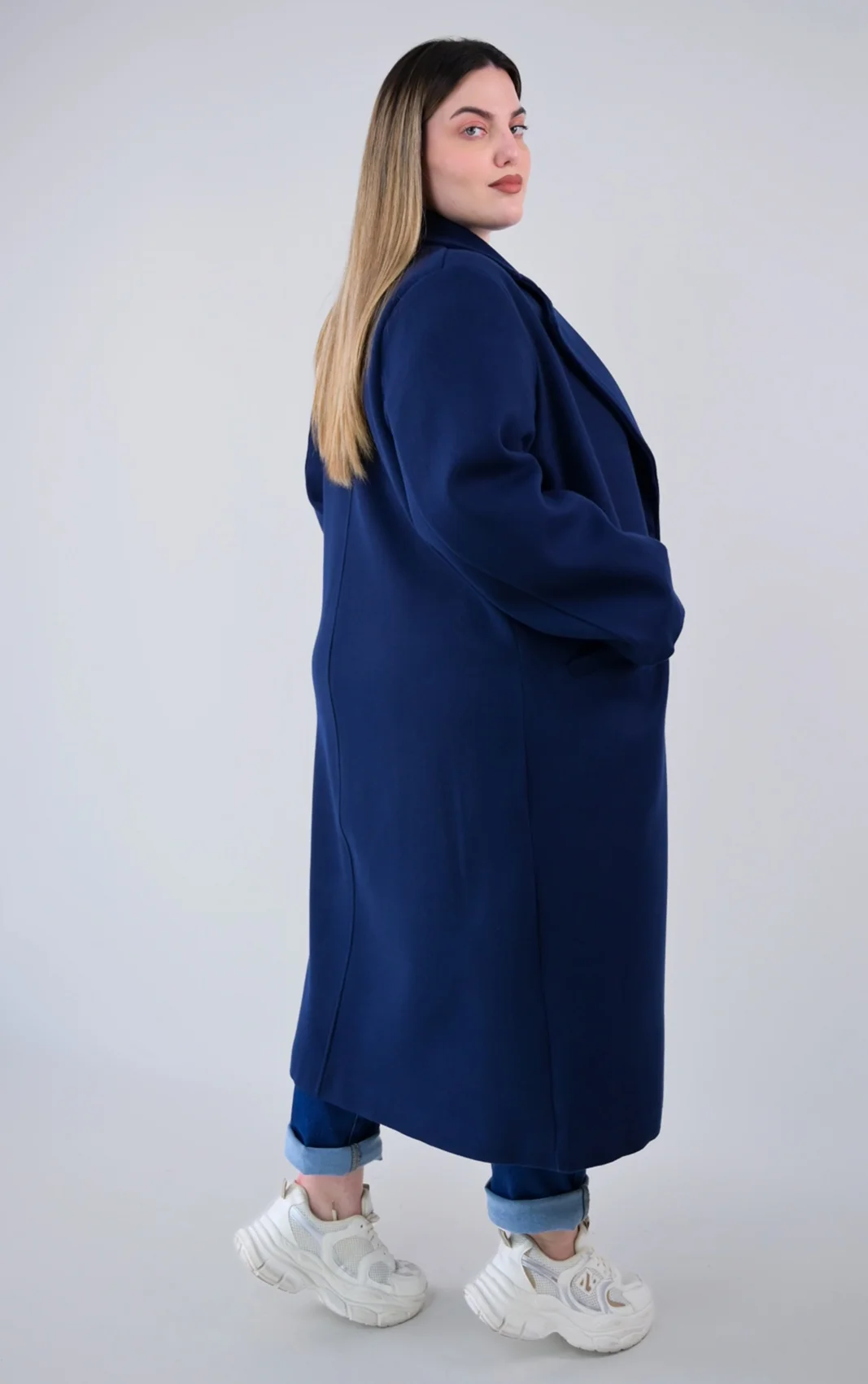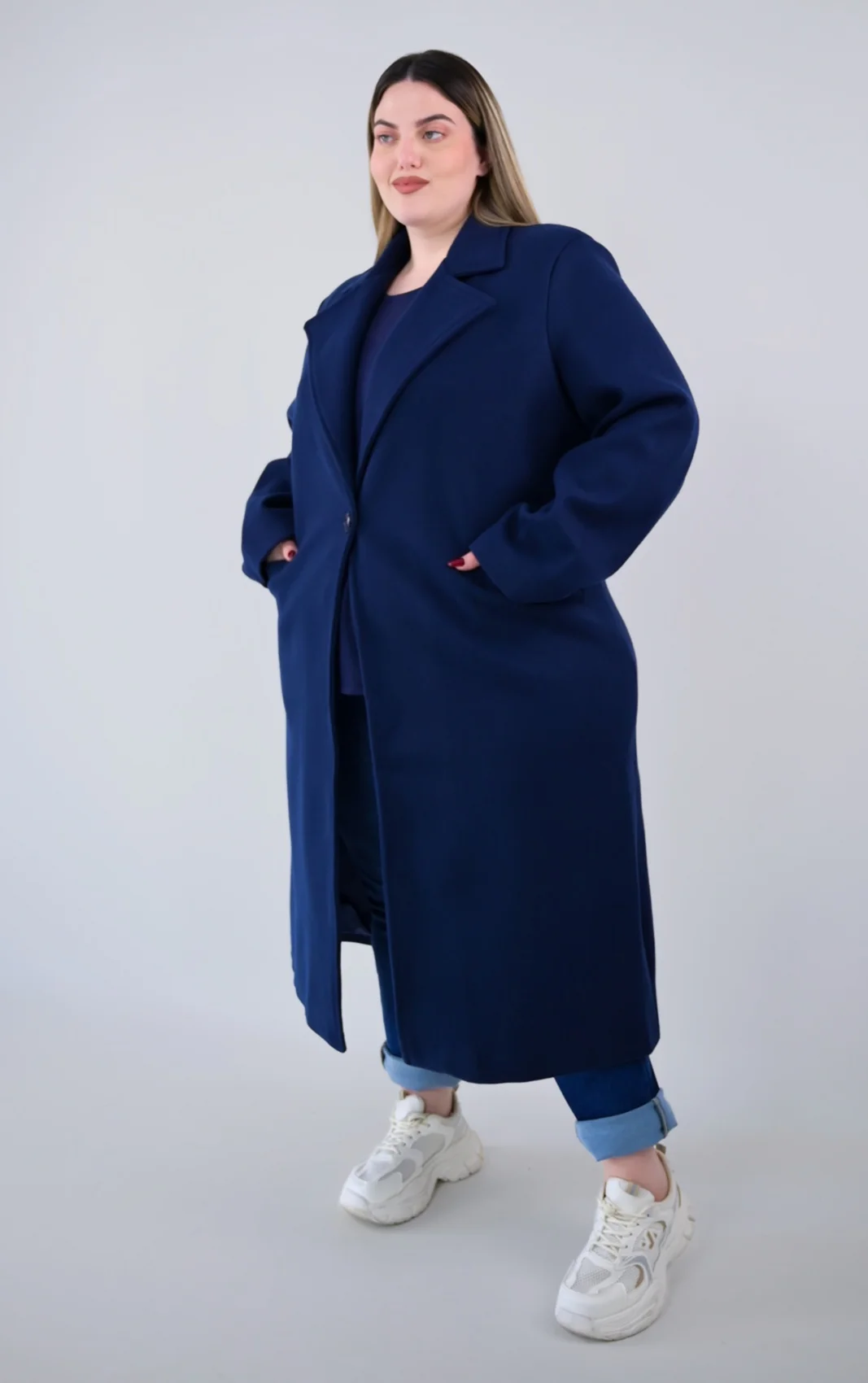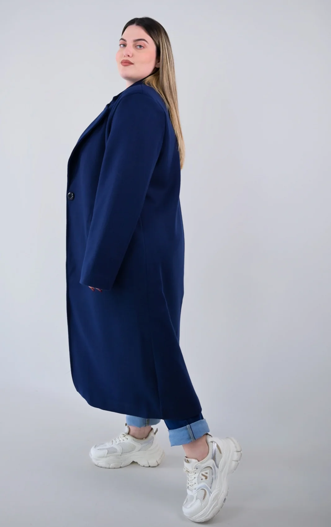 Δώστε μια νότα χρώματος στην γκαρνταρόμπα σας με αυτό το διαχρονικό μακρύ παλτό σε μια υπέροχη, βαθιά μπλε απόχρωση. Το μπλε χρώμα αποτελεί μια εξαιρετικά στυλάτη εναλλακτική του κλασικού μαύρου, συνδυάζεται εύκολα και προσδίδει κομψότητα σε κάθε εμφάνιση. Σχεδιασμένο με την ίδια ίσια, χαλαρή γραμμή, κολακεύει τη σιλουέτα και επιτρέπει άνετο layering, καθιστώντας το ιδανική επιλογή για όλες τις ώρες της ημέρας.