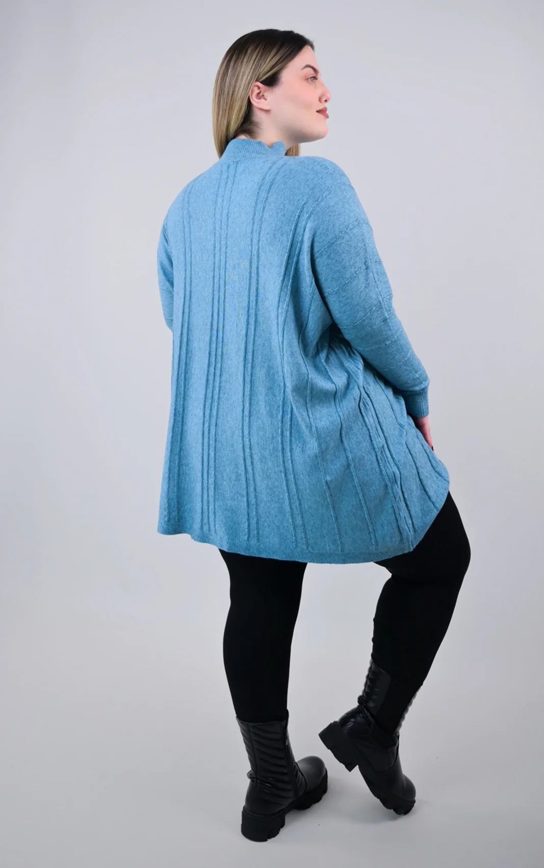- Λεπτομέρειες: Διακριτικές κάθετες πλέξεις στο μπροστινό μέρος που προσθέτουν υφή και οπτικό ενδιαφέρον.