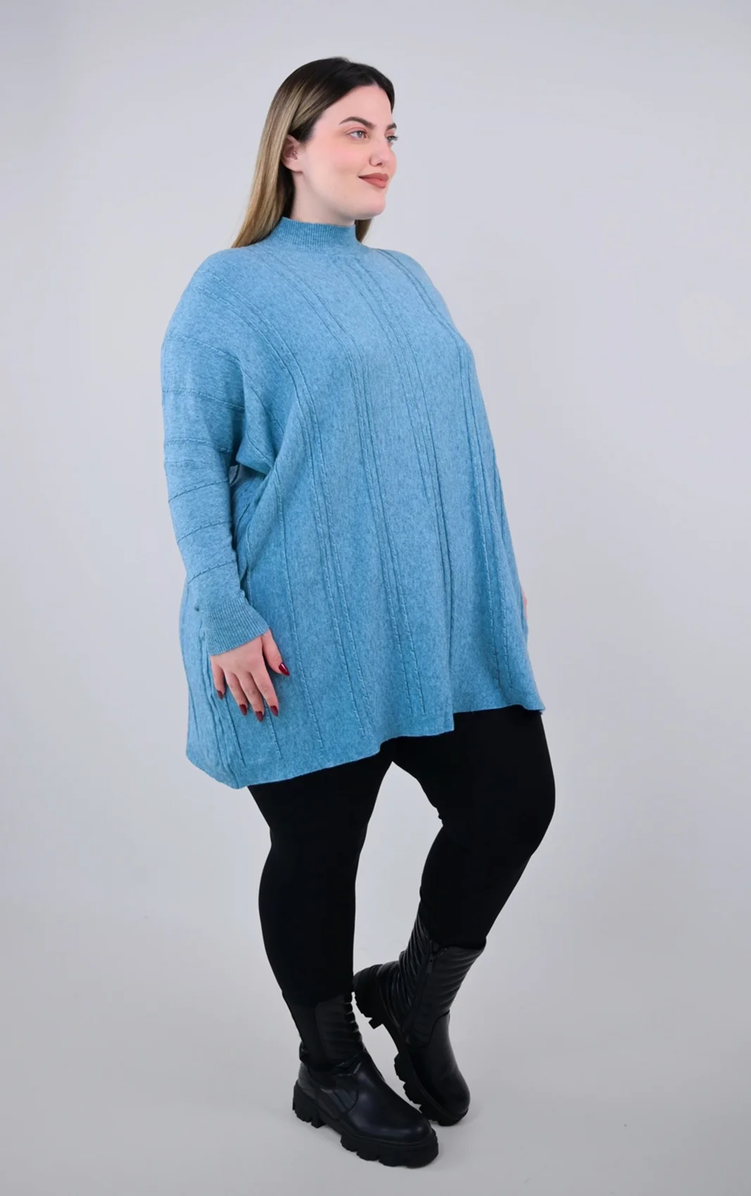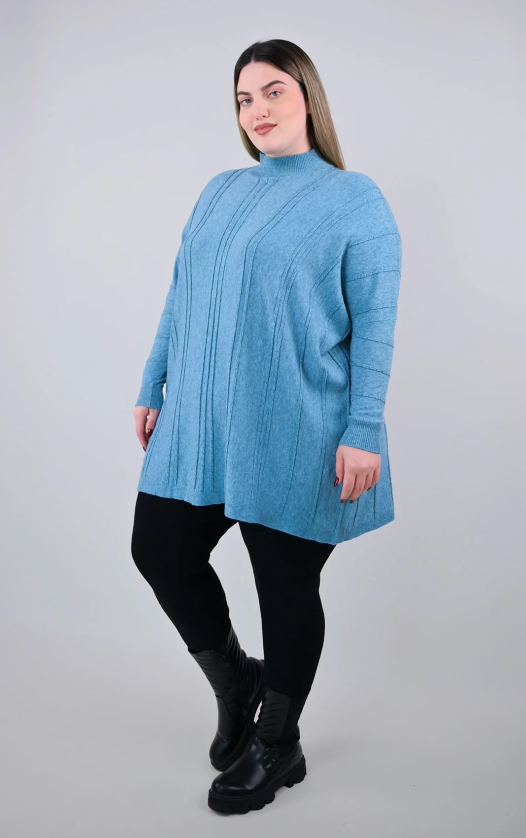 - Μήκος: Το μήκος της είναι μακρύ, ιδανικό για να φορεθεί πάνω από κολάν ή στενά παντελόνια.