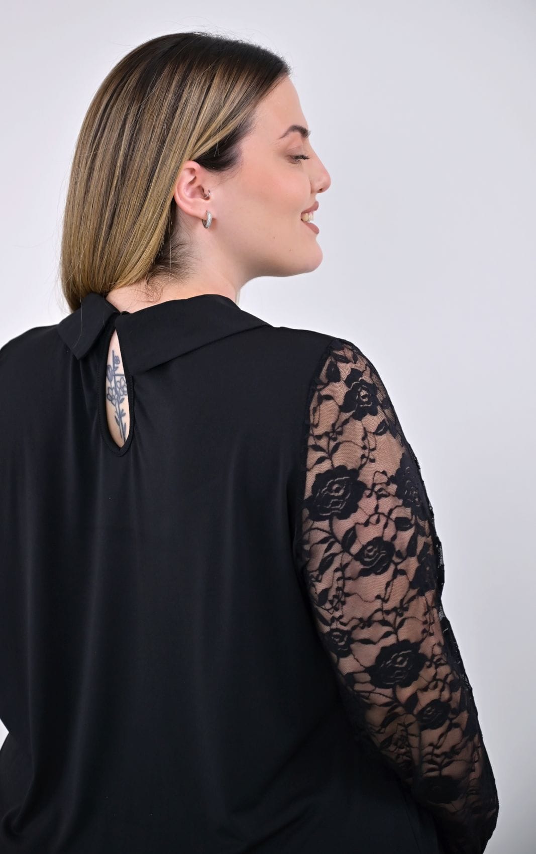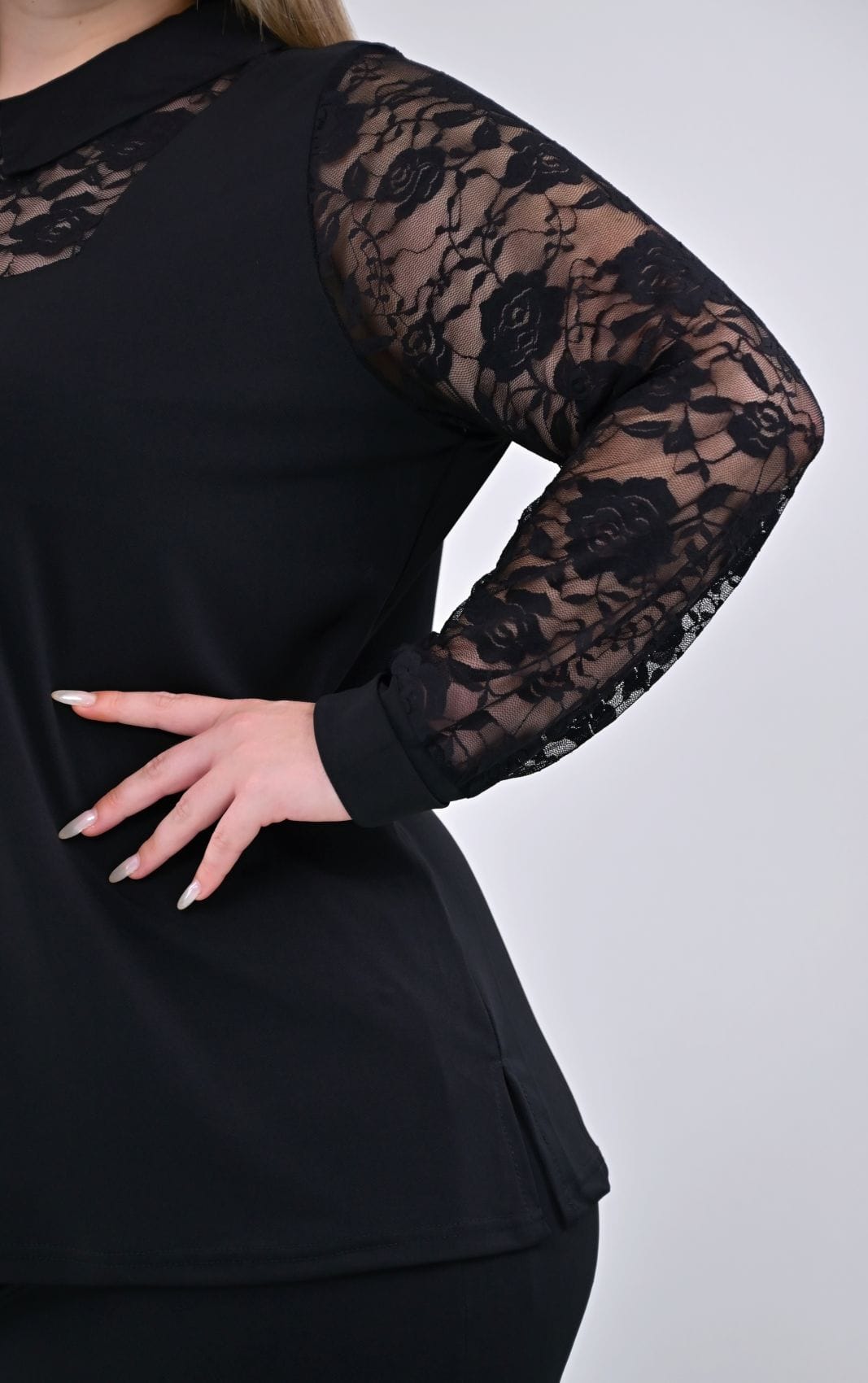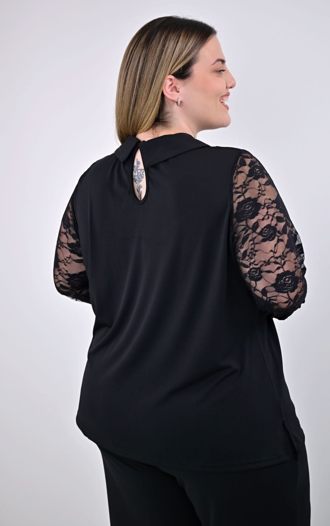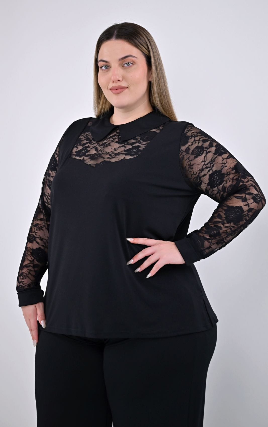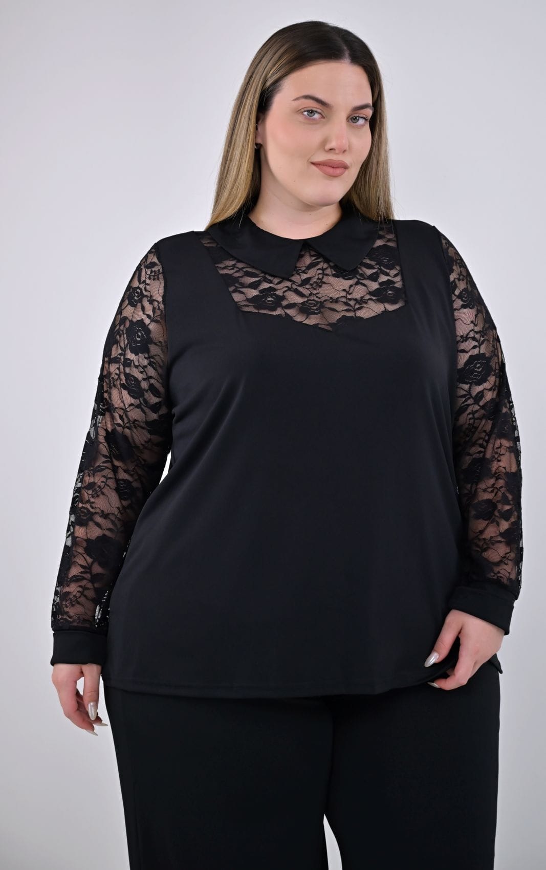 Μαύρη Μπλούζα Με Δαντέλα Μανίκια