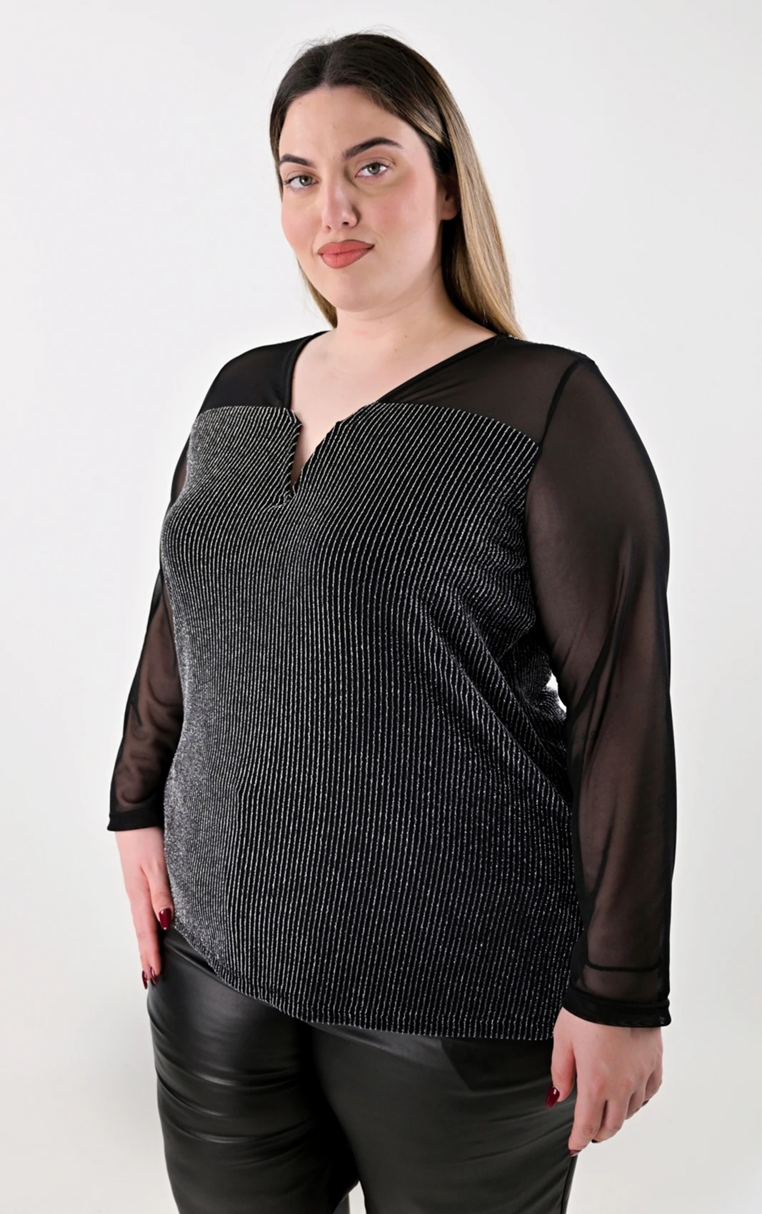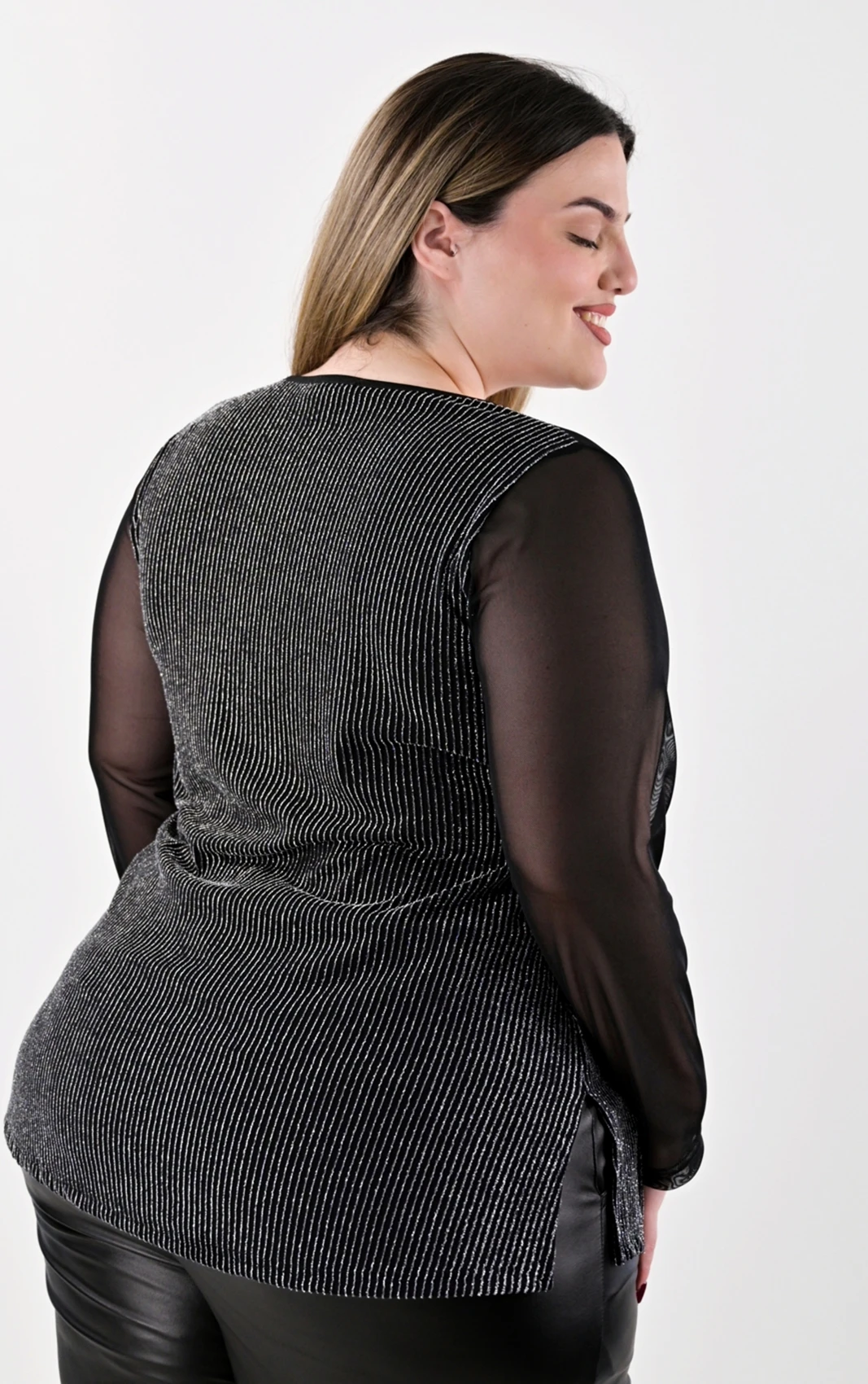 Μπλούζα Lurex με Διάφανα Μανίκια