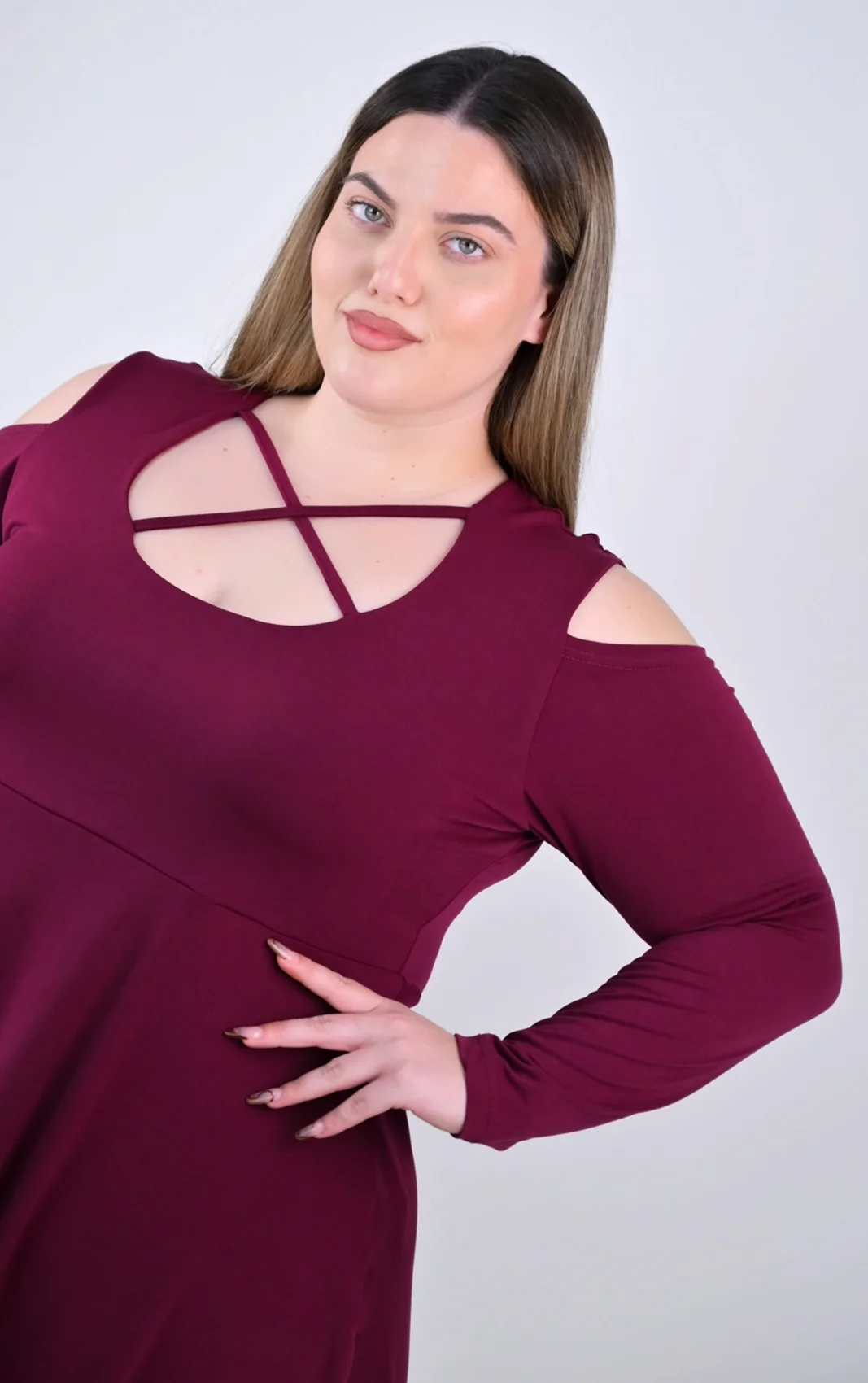 Προσθέστε ένταση και χρώμα στις εμφανίσεις σας με αυτή την plus size μπορντό μπλούζα που συνδυάζει δυναμικό στυλ με απόλυτη άνεση. Σχεδιασμένη για να εντυπωσιάζει, αυτή η μπλούζα είναι το κομμάτι που θα σας κάνει να νιώθετε γεμάτη αυτοπεποίθηση σε κάθε σας έξοδο, χάρη στο πλούσιο χρώμα και τις μοντέρνες λεπτομέρειές της.