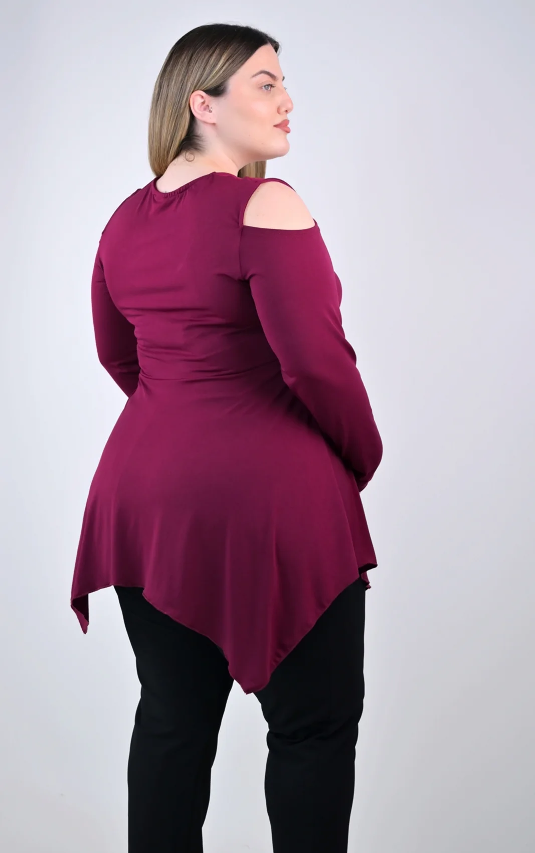 Ασύμμετρο ,Ελαστικό ,Μακρυμάνικο ,Peplum ,Εξωμο ,με άνοιγμα |