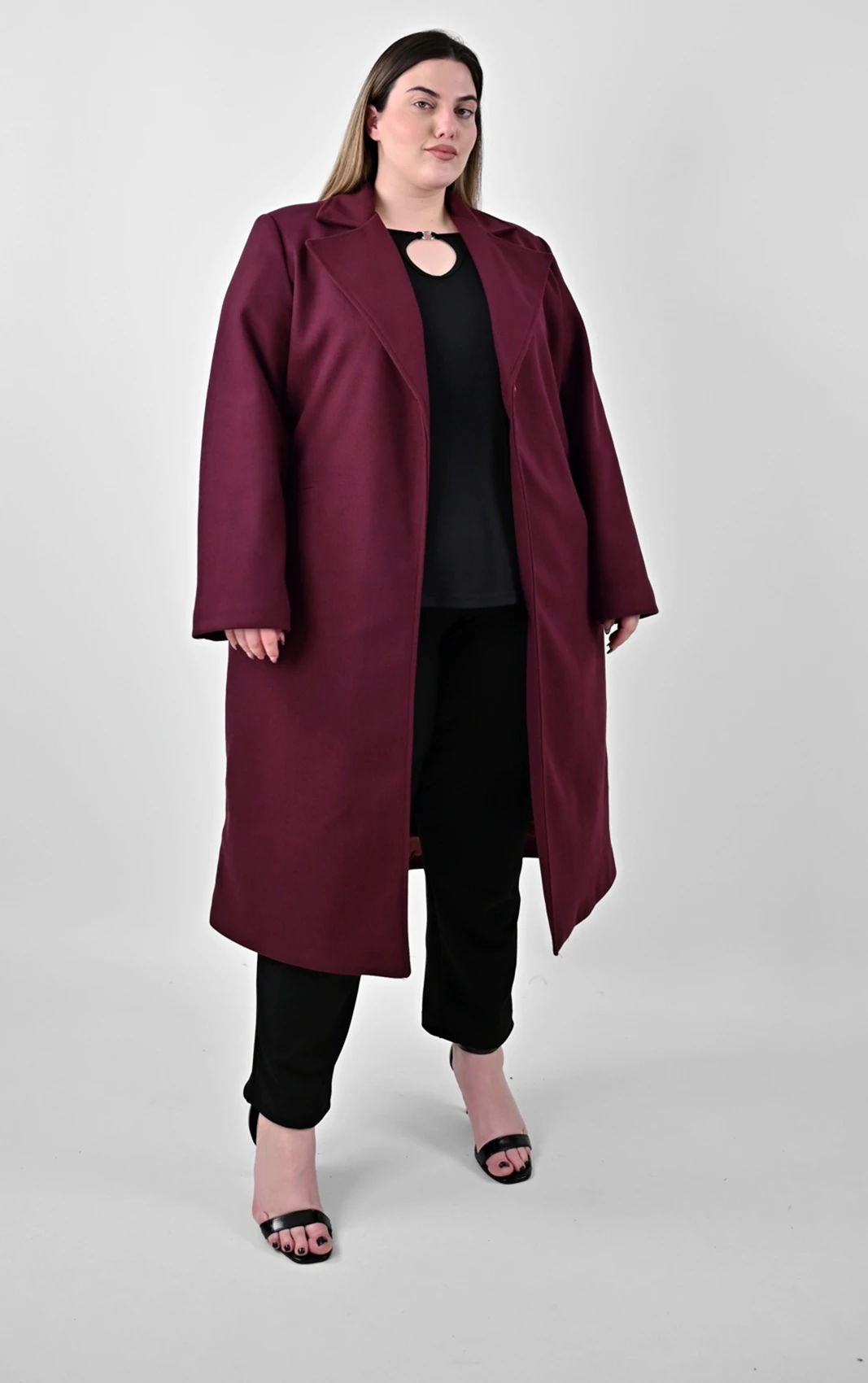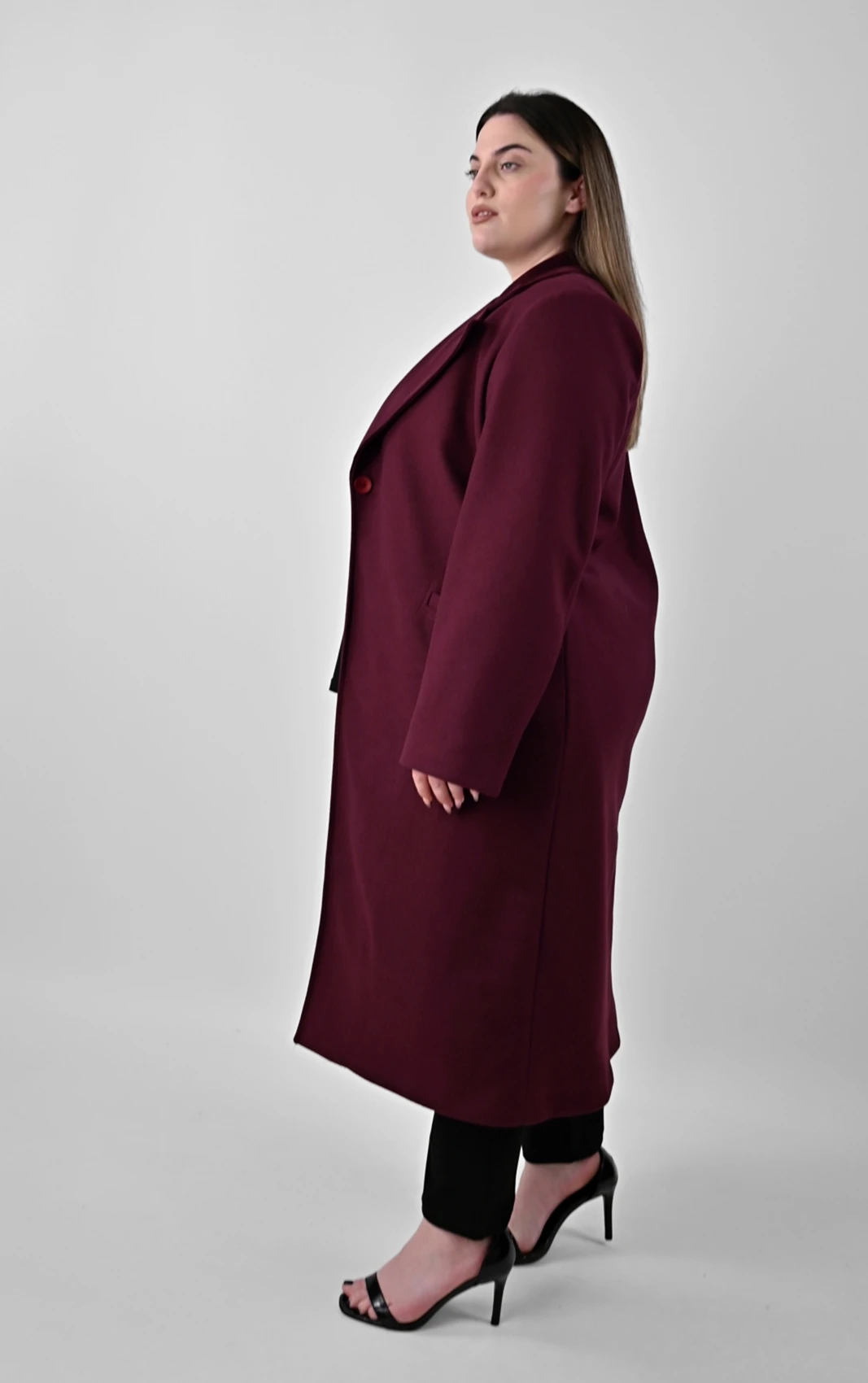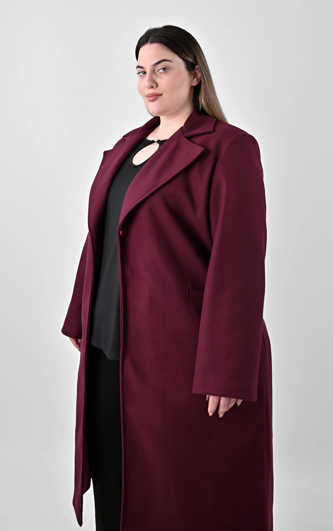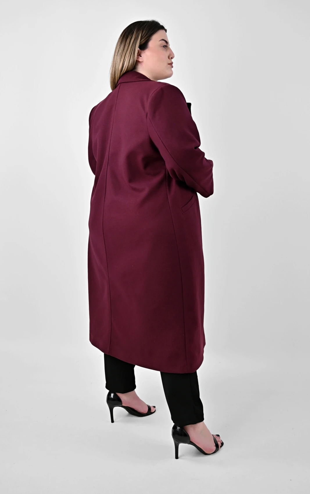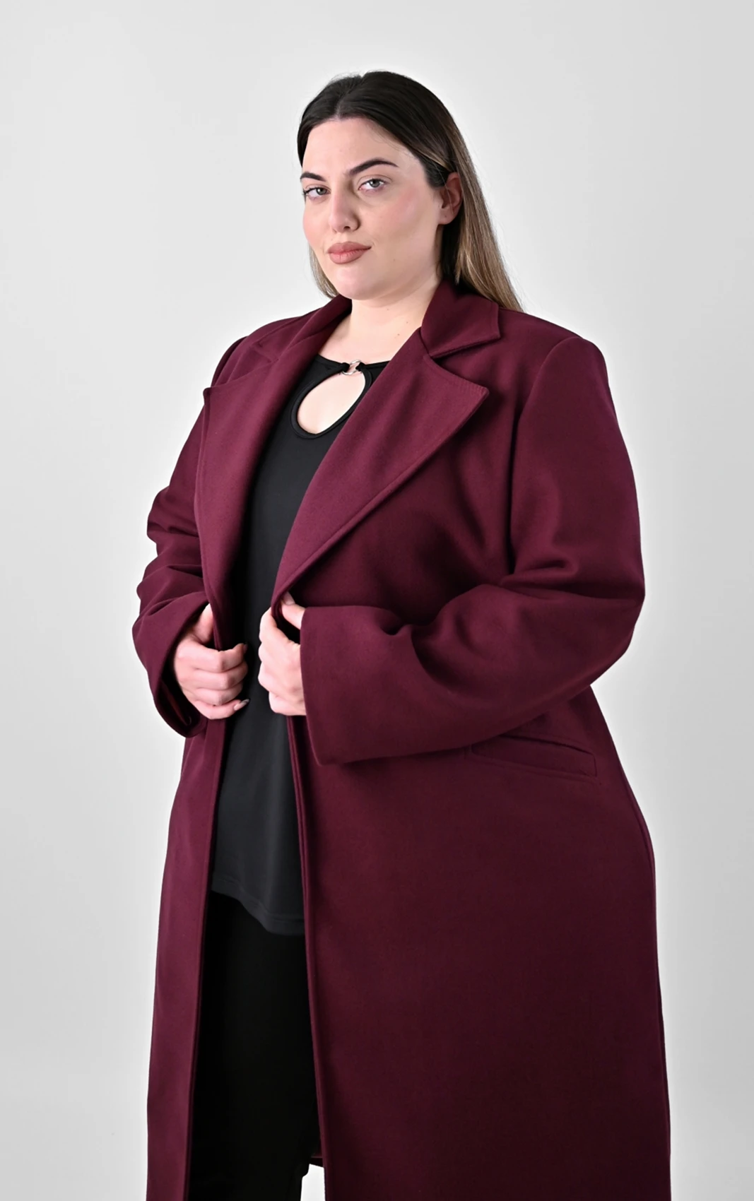 Μπορντό Μακρύ Παλτό σε Ίσια Γραμμή