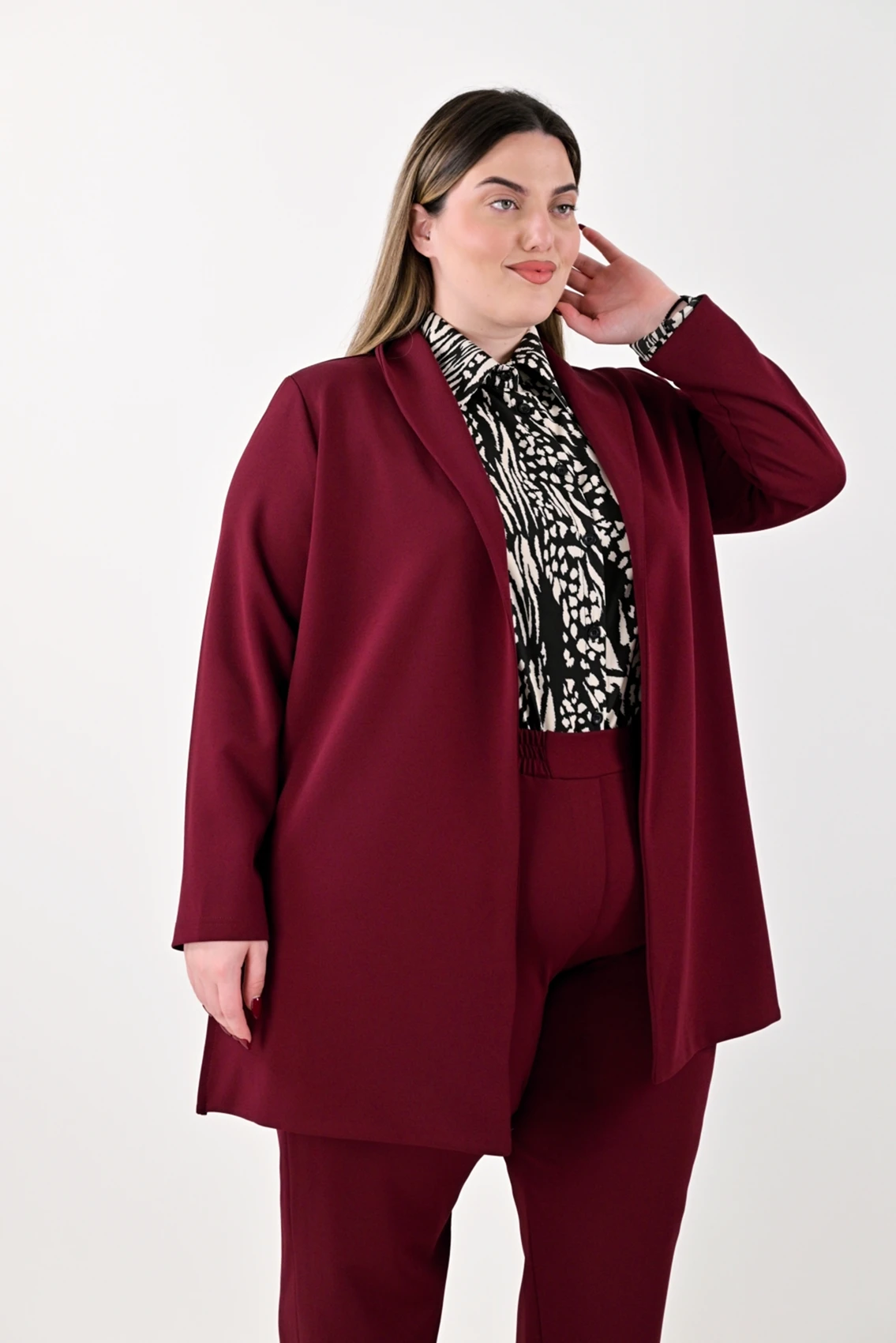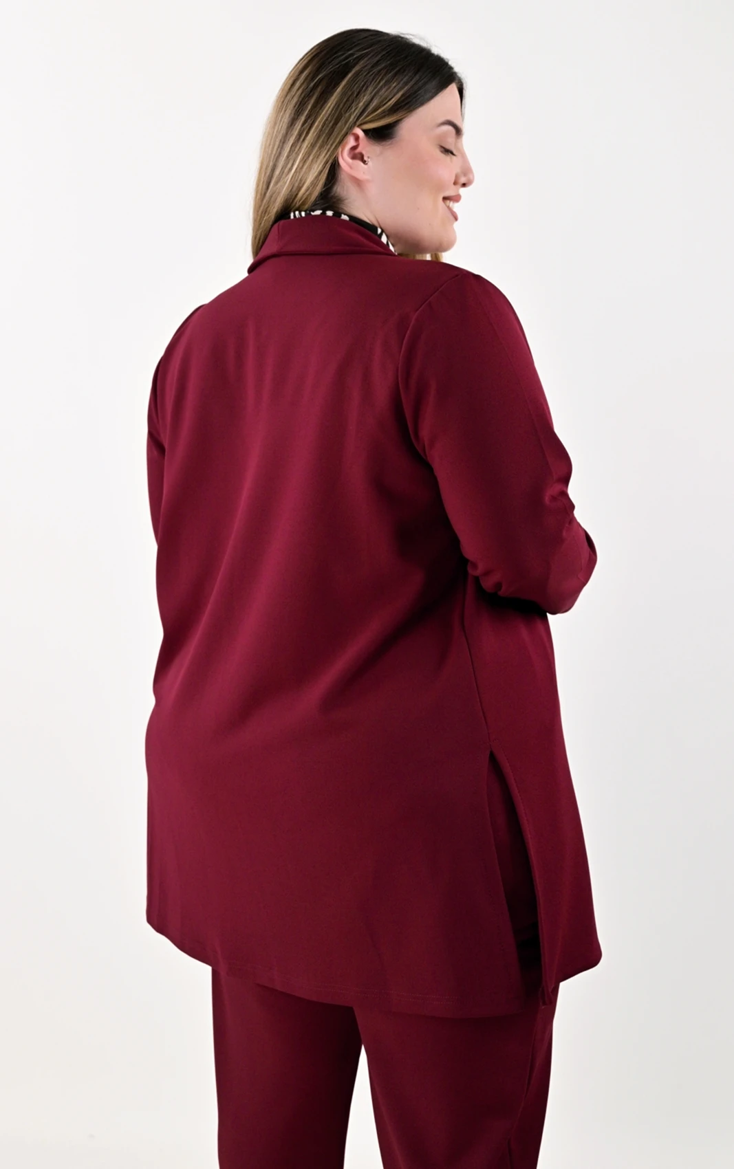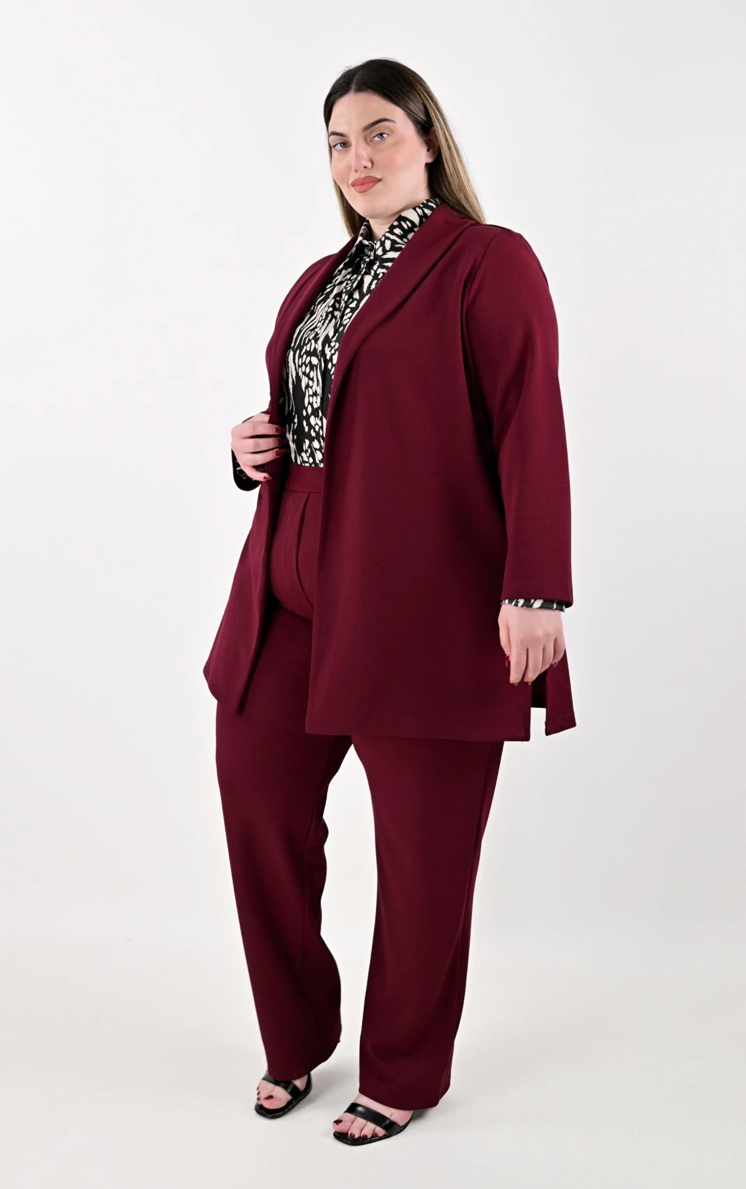 Μπορντό Σακάκι Τύπου Ζακέτα με Ζώνη