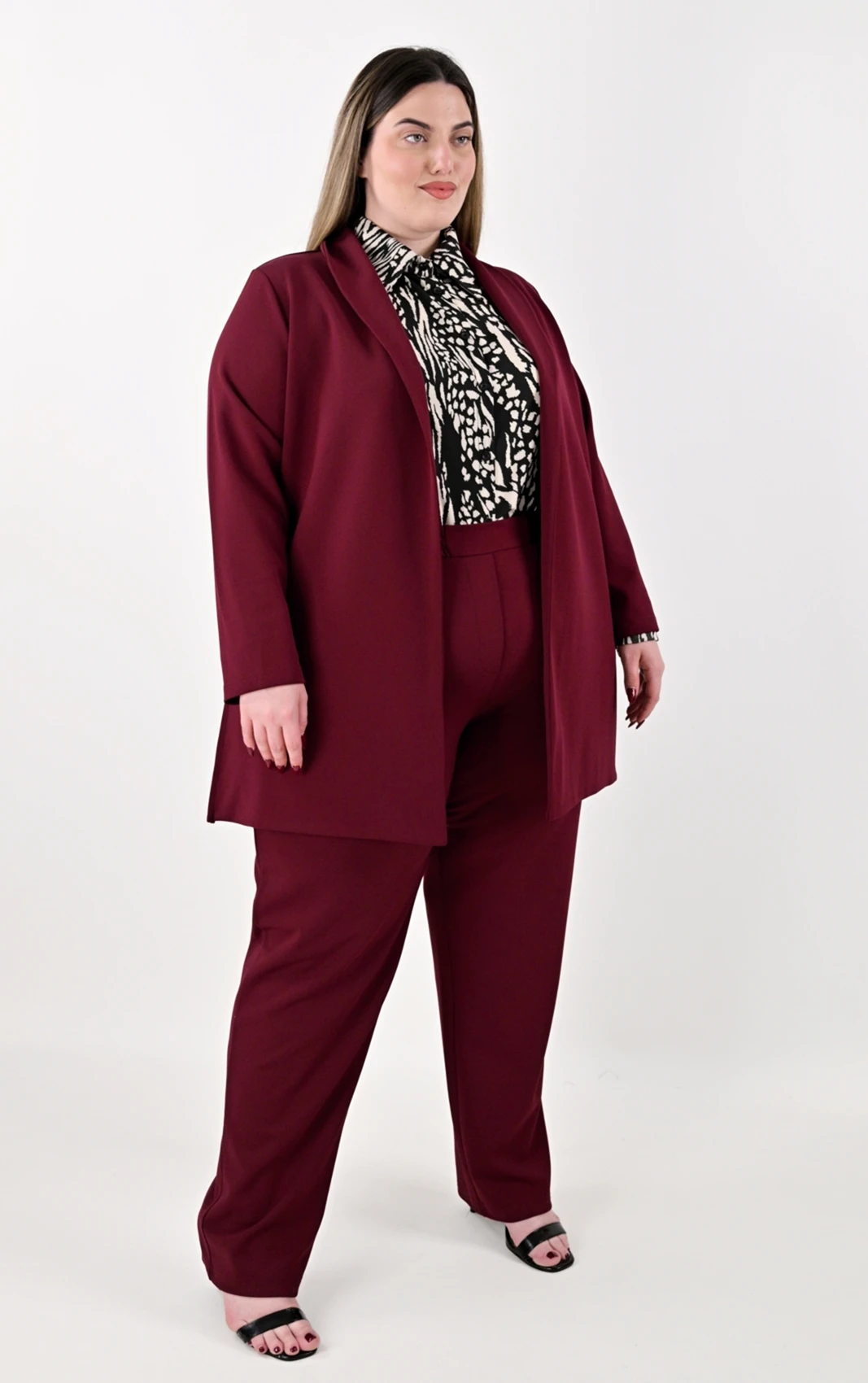 - Ως Σετ: Φορέστε το μαζί με το ασορτί μπορντό παντελόνι και ένα απλό τοπ για ένα απόλυτα μοντέρνο και συντονισμένο σύνολο.