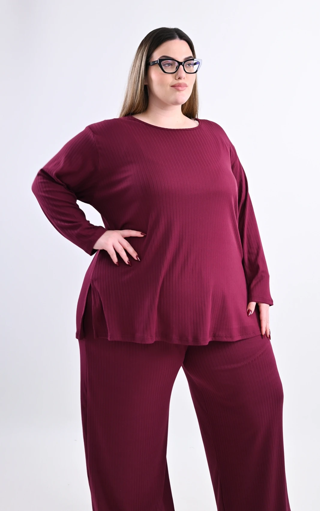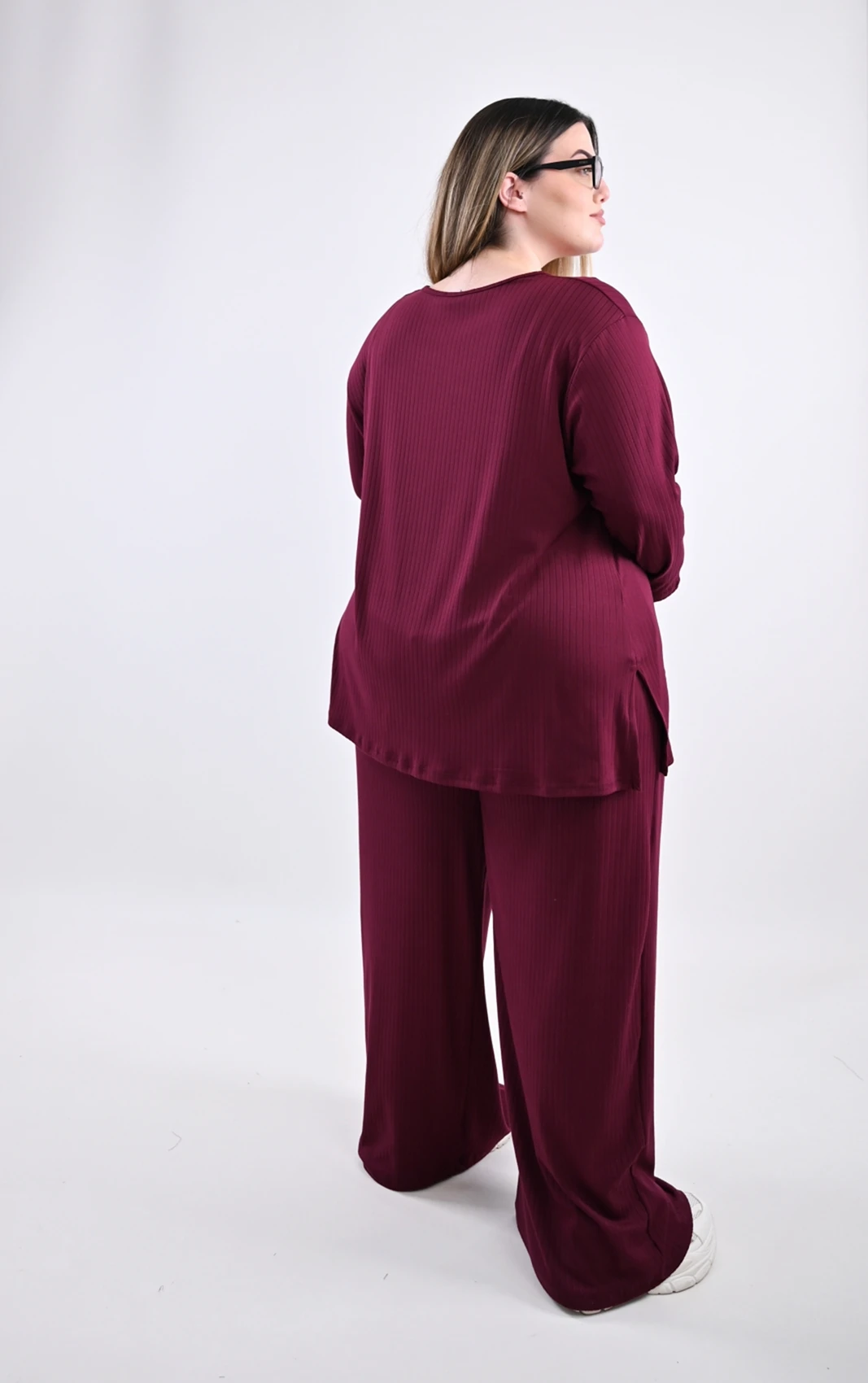 Μπορντό Σετ Ριπ Μπλούζα & Παντελόνα