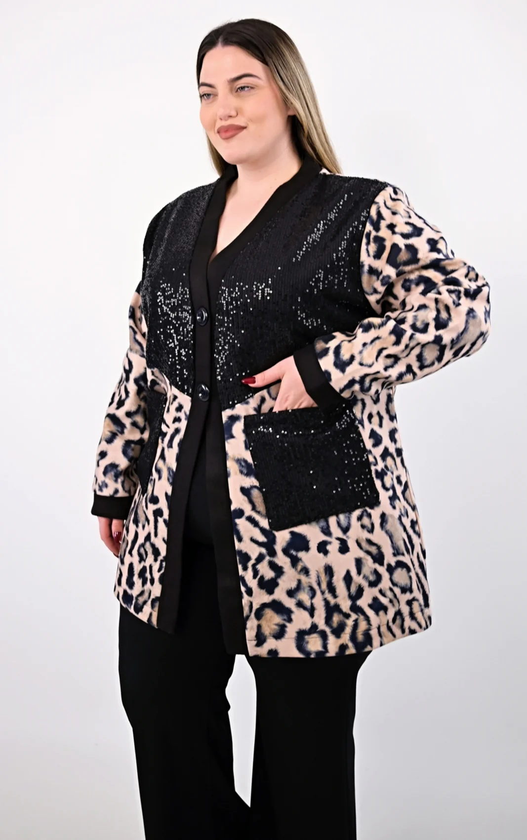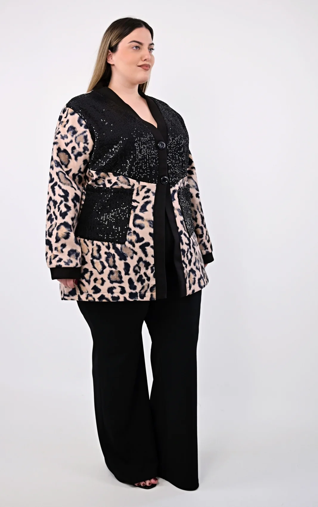 Παλτοζακέτα με Animal Print & Παγιέτες