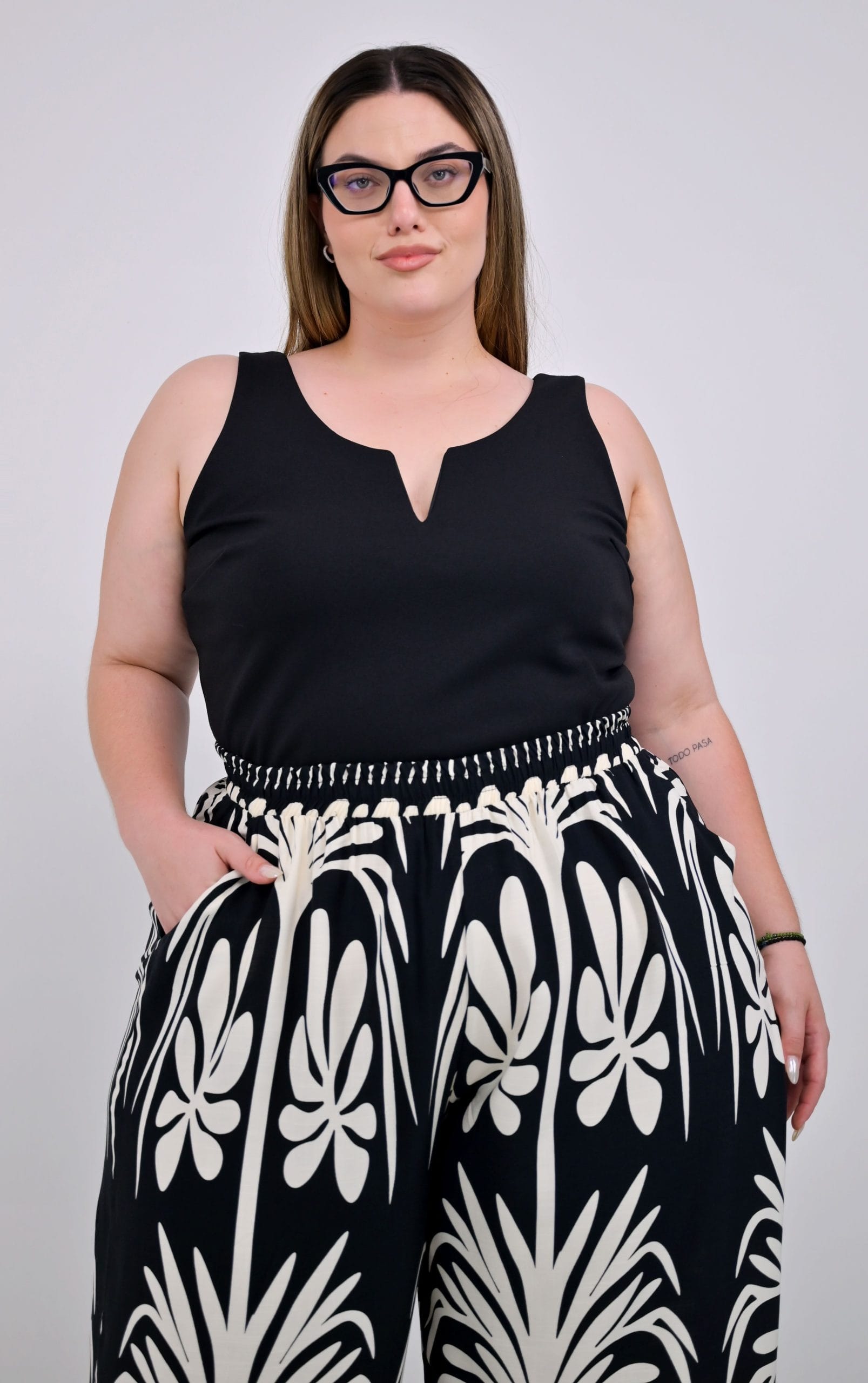Στο κατάστημά μας, θα βρείτε plus size ρούχα που είναι ταυτόχρονα μοντέρνα και άνετα, όπως plus size φορέματα και ρούχα για όλες τις ώρες. Επίσης, ποιοτικά εσώρουχα ελληνικής ραφής και αξεσουάρ που ολοκληρώνουν την εμφάνισή σας. Όλα τα επιλέγουμε με γνώμονα τις δικές σας ανάγκες. Τα φτιάχνουμε με αγάπη, για να νιώθετε όμορφη, θηλυκή και ταυτόχρονα σίγουρη κάθε μέρα. Plus Size Παντελόνα Εμπριμέ με Λάστιχο