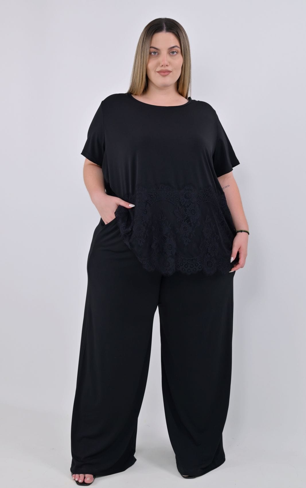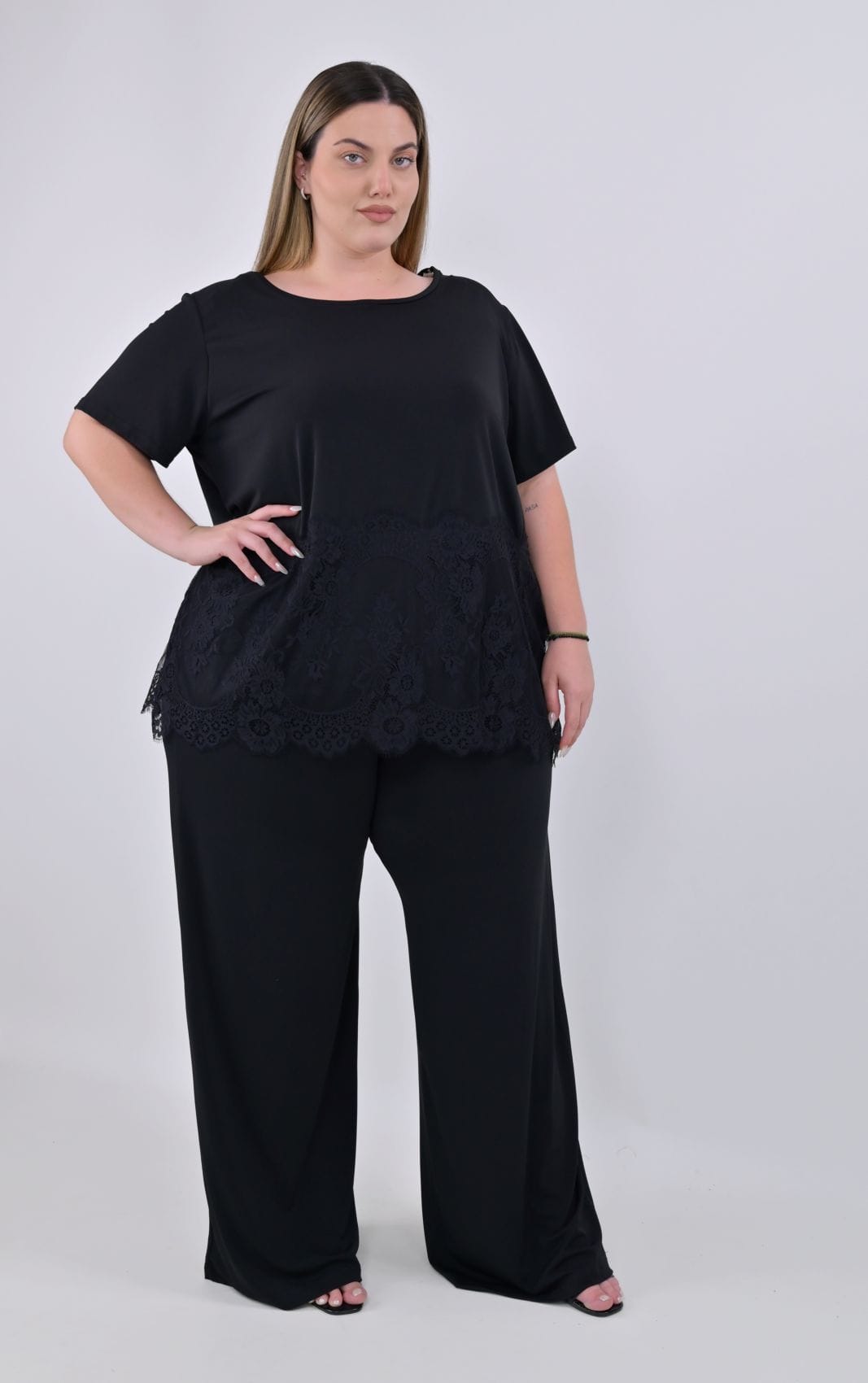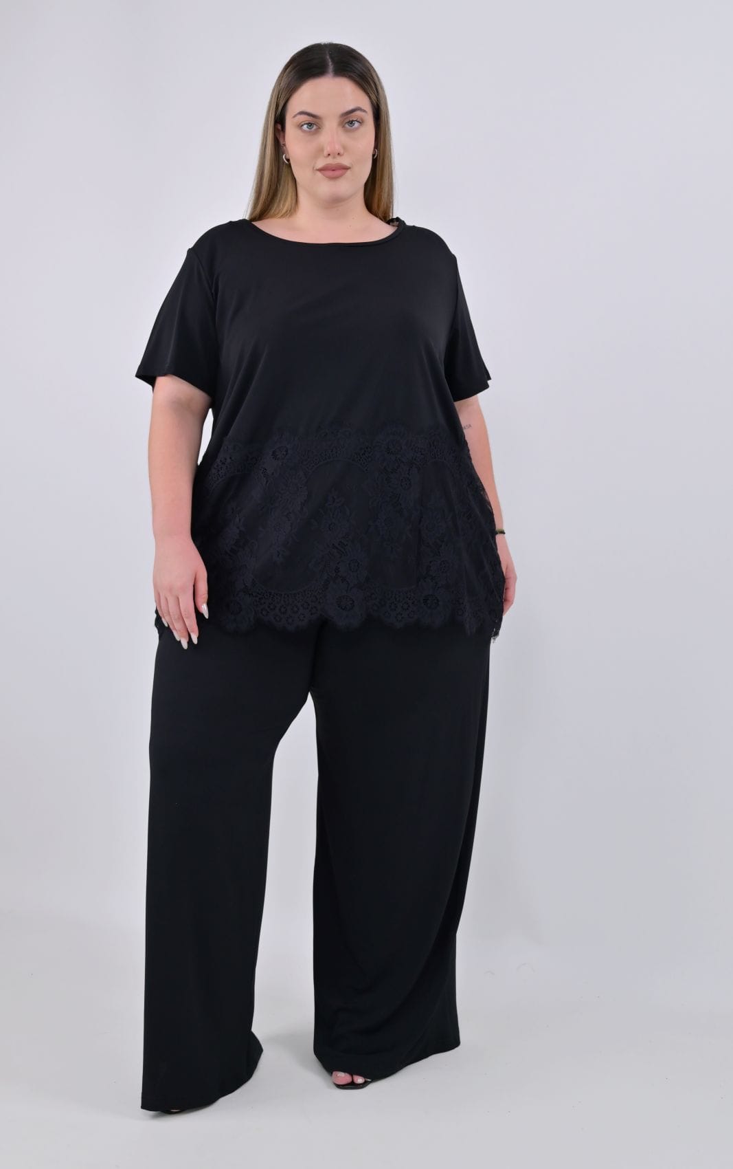 Ανανεώστε τη συλλογή σας με αυτή την elegant plus size wide leg παντελόνα για effortless chic εμφάνιση σε κάθε περίσταση.