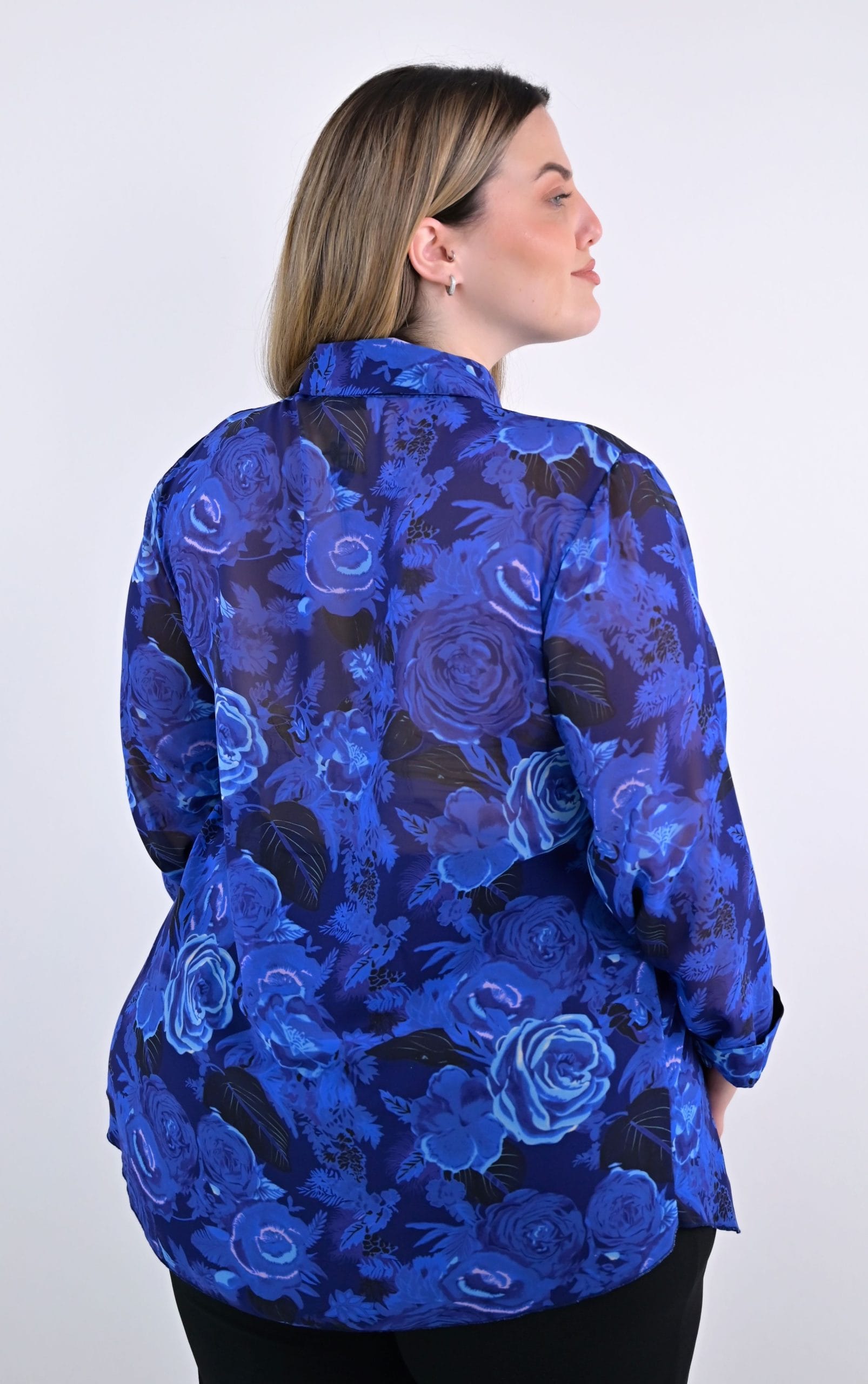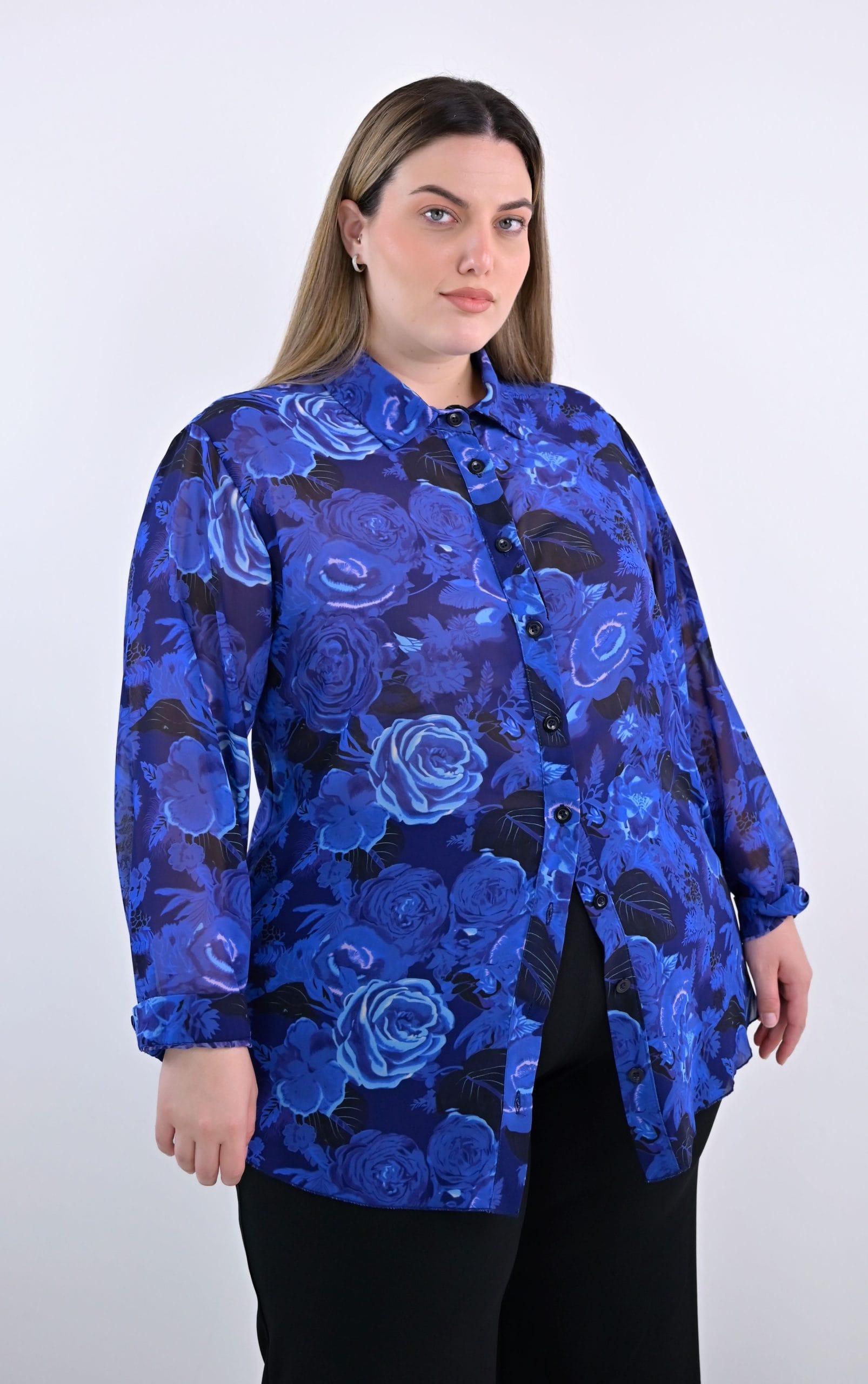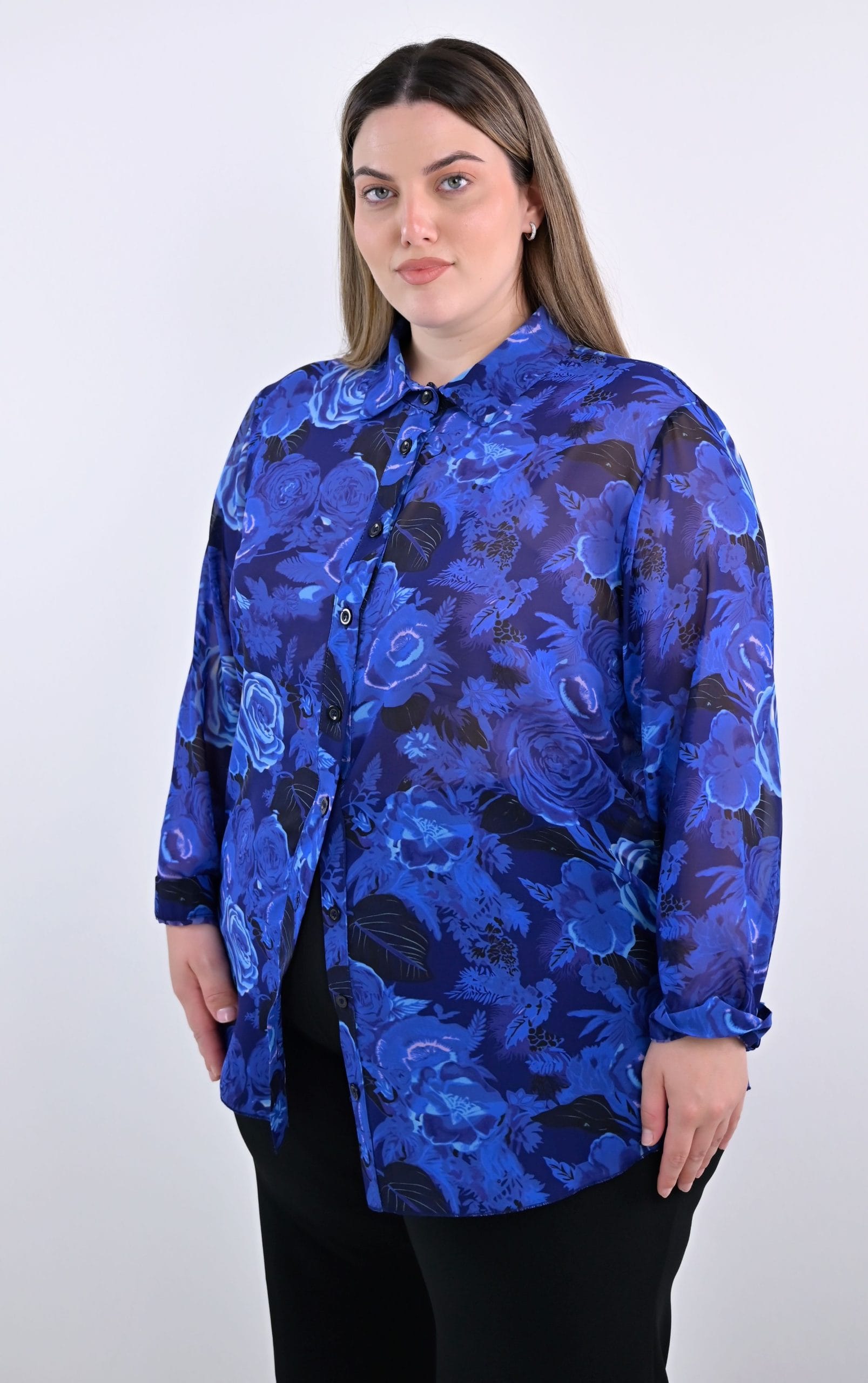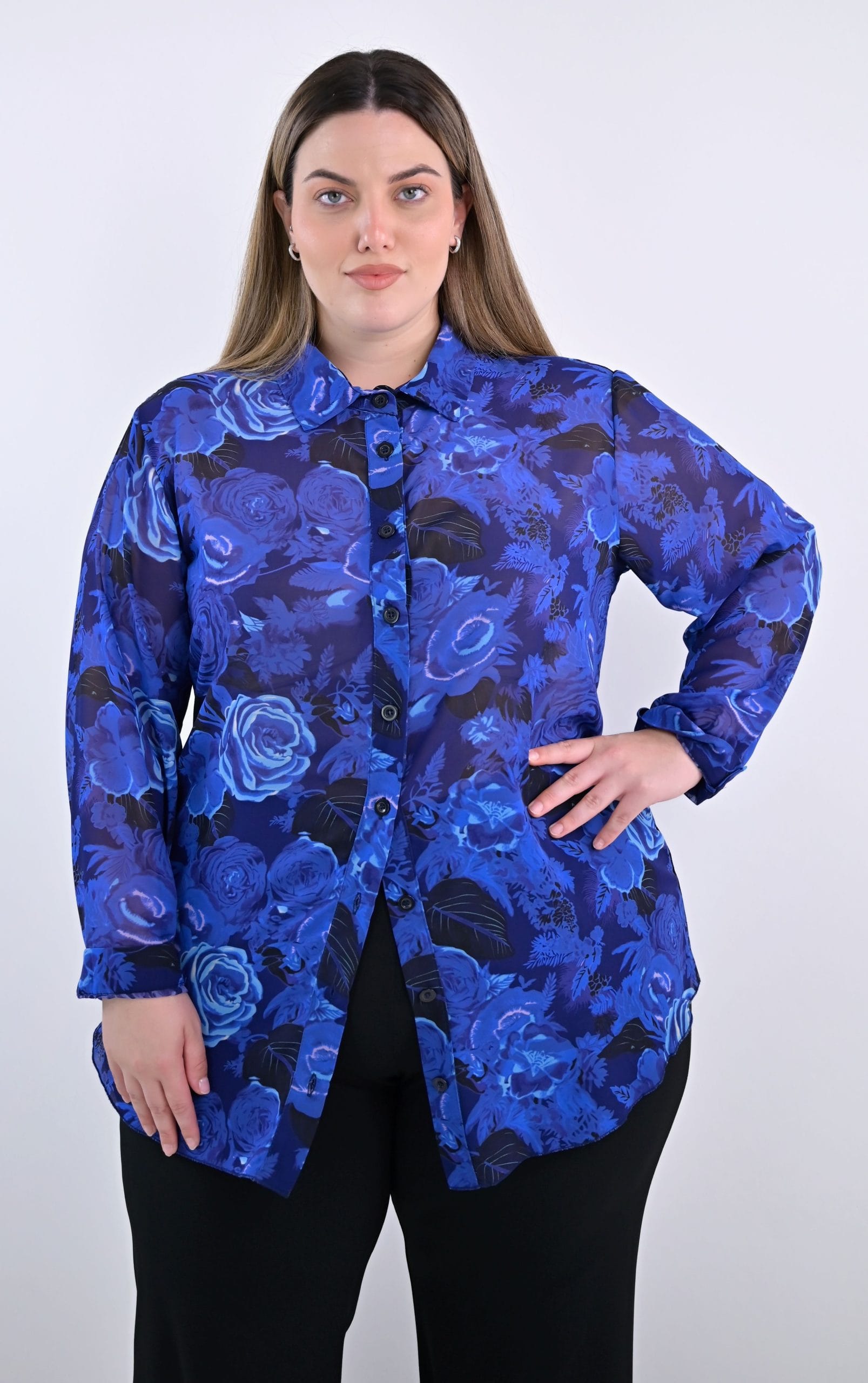 Αυτό το plus size πουκάμισο ξεχωρίζει για το μοναδικό του στυλ, συνδυάζοντας την κλασική μπλε απόχρωση με ένα μοντέρνο εμπριμέ μοτίβο. Είναι ένα κομμάτι με χαρακτήρα, ιδανικό για να προσθέσετε μια ενδιαφέρουσα και δροσερή πινελιά στην γκαρνταρόμπα σας για όλες τις εποχές.