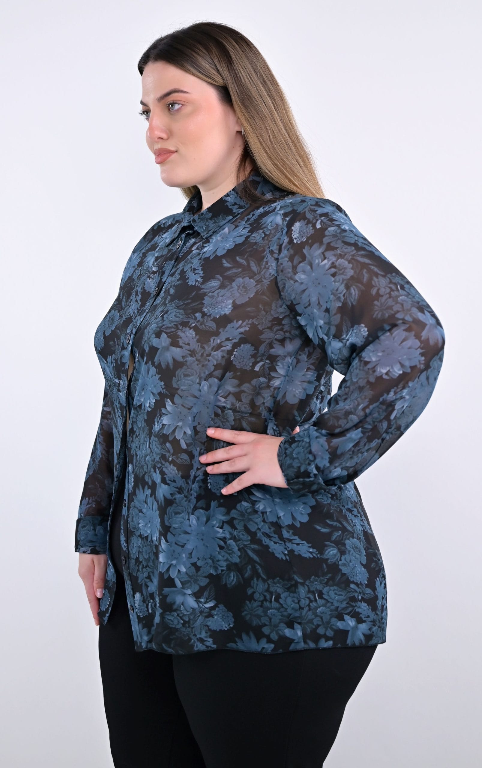 Αυτό το plus size πουκάμισο ξεχωρίζει για το μοναδικό του στυλ, συνδυάζοντας την πλούσια, βαθιά απόχρωση του μπλε πετρόλ με ένα μοντέρνο εμπριμέ μοτίβο. Είναι ένα κομμάτι με χαρακτήρα, ιδανικό για να προσθέσετε μια ενδιαφέρουσα χρωματική πινελιά στην φθινοπωρινή σας γκαρνταρόμπα.