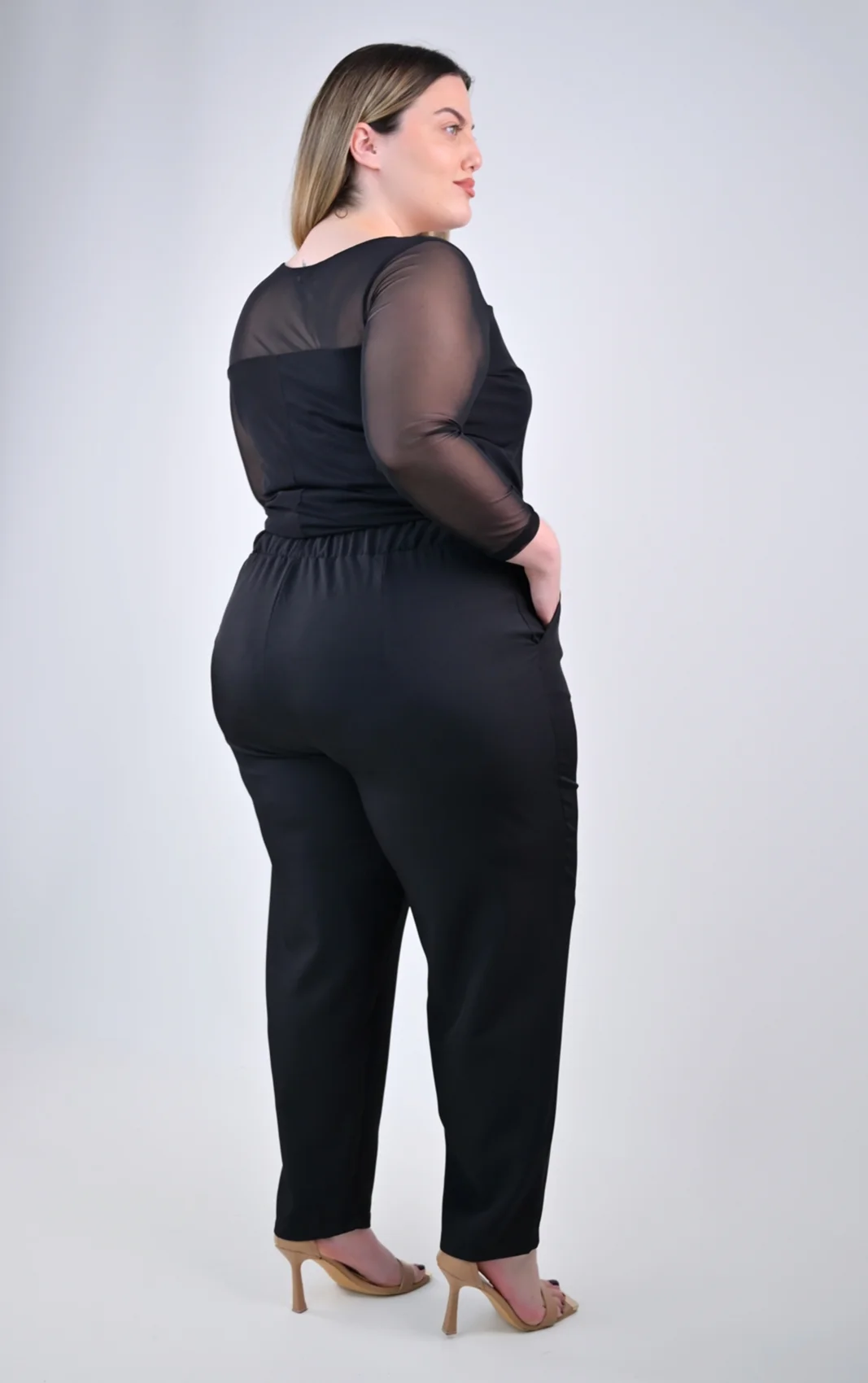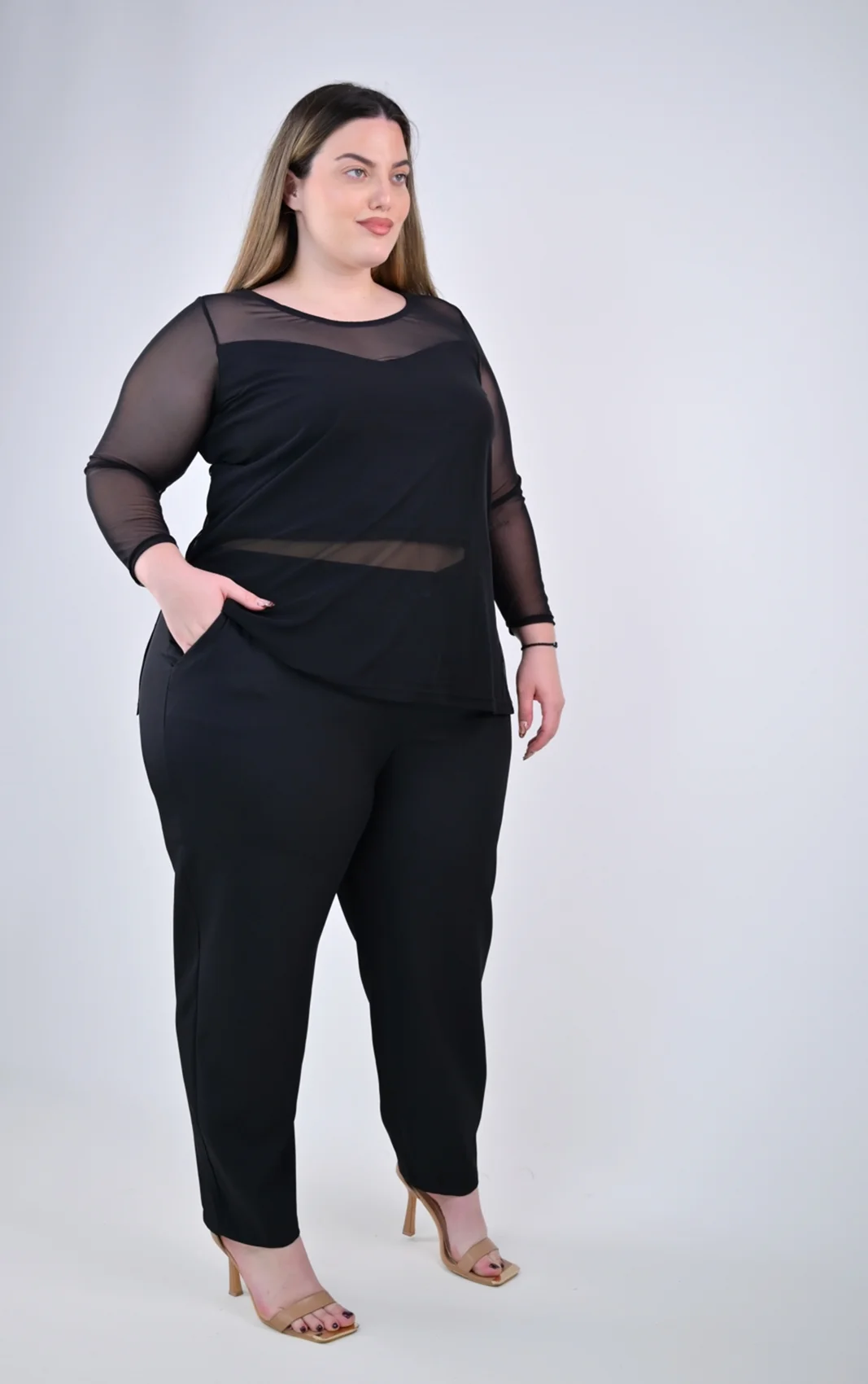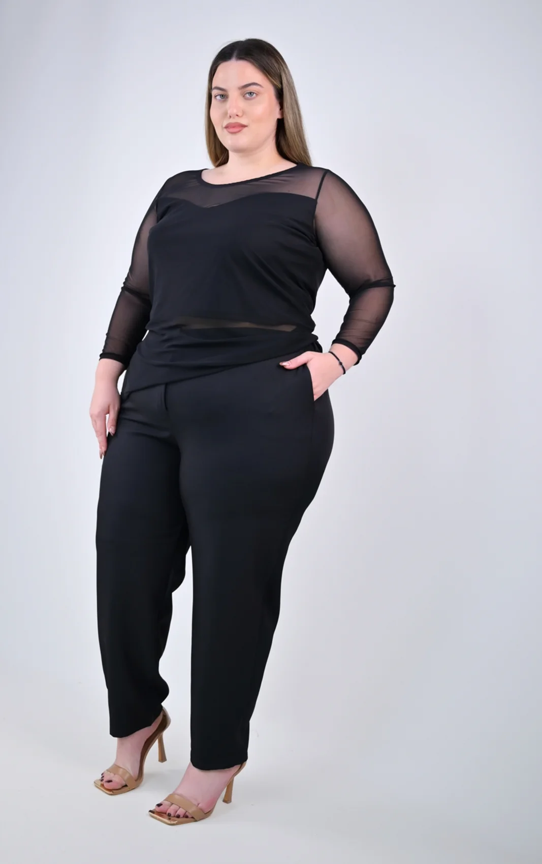 Ανακαλύψτε το απόλυτο βασικό κομμάτι κάθε γκαρνταρόμπας: ένα παντελόνι που συνδυάζει άψογα την άνεση με το διαχρονικό στυλ. Αυτό το plus size ψηλόμεσο μαύρο παντελόνι είναι σχεδιασμένο για να προσφέρει άψογη εφαρμογή και ευελιξία, αποτελώντας τη βάση για αμέτρητα σύνολα, από το πρωί στο γραφείο μέχρι την πιο επίσημη βραδινή σας έξοδο.