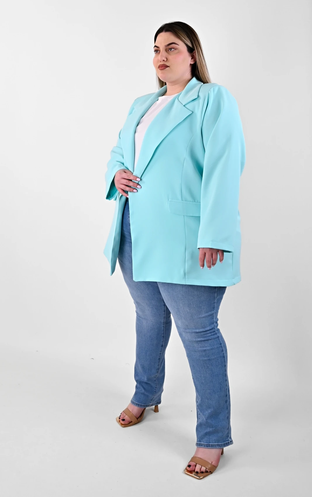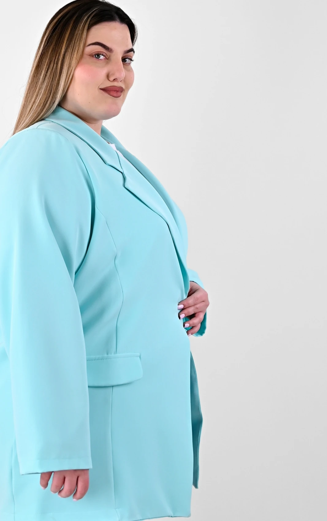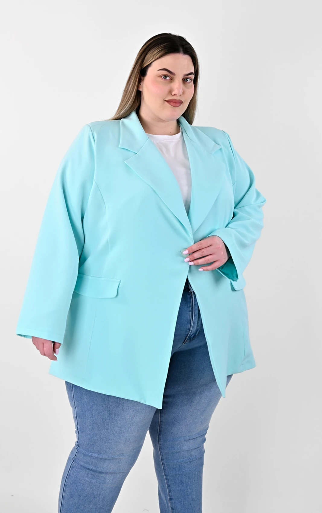 Προσθέστε μια νότα φρεσκάδας και κομψότητας στις εμφανίσεις σας με αυτό το εντυπωσιακό plus size σακάκι σε βεραμάν απόχρωση. Είναι ένα κομμάτι που συνδυάζει την κλασική γραμμή με ένα δροσερό και μοντέρνο χρώμα, ιδανικό για τη γυναίκα που θέλει να ξεχωρίζει με το εκλεπτυσμένο της γούστο χωρίς να θυσιάζει την άνεση. Η προσεγμένη του ραφή και το υπέροχο «πέσιμο» του υφάσματος το καθιστούν απαραίτητο για κάθε γκαρνταρόμπα, προσδίδοντας μια αίσθηση ηρεμίας και δυναμισμού ταυτόχρονα.