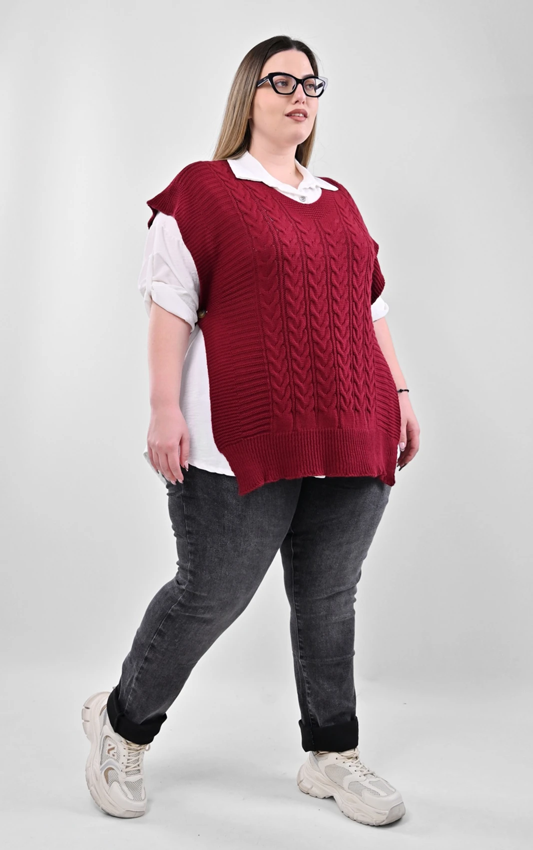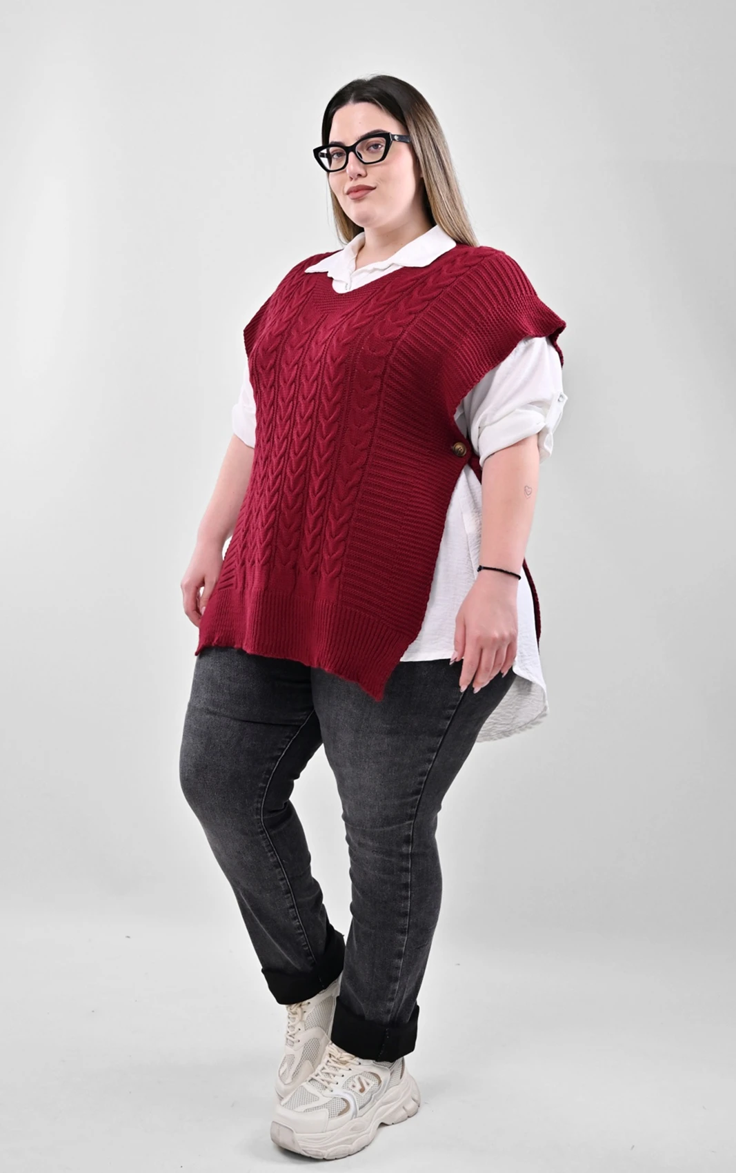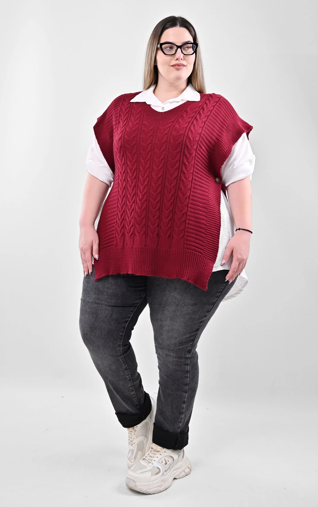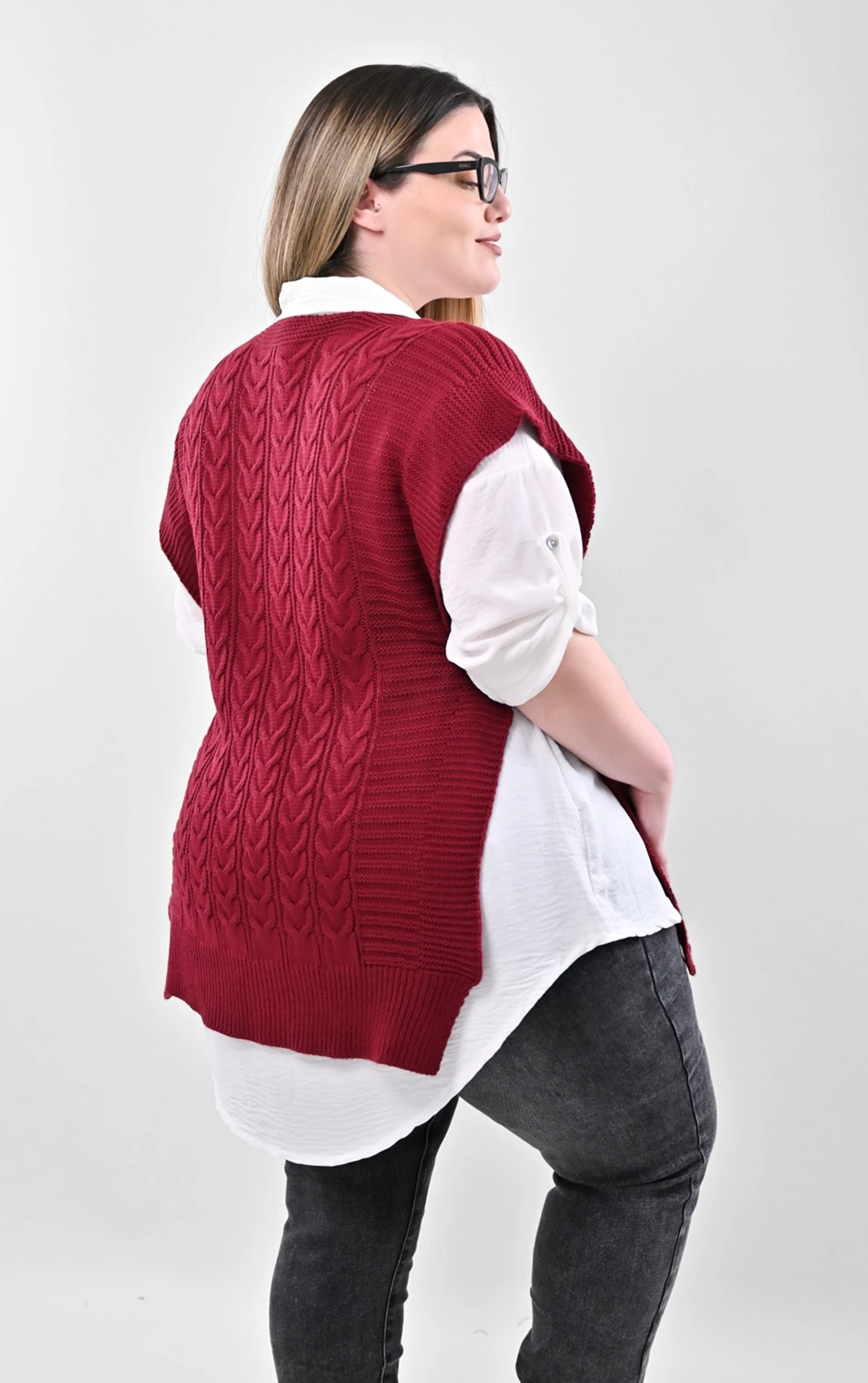 Σετ 2-τεμαχίων: Λευκό Πουκάμισο & Μπορντό Πλεκτή Καζάκα