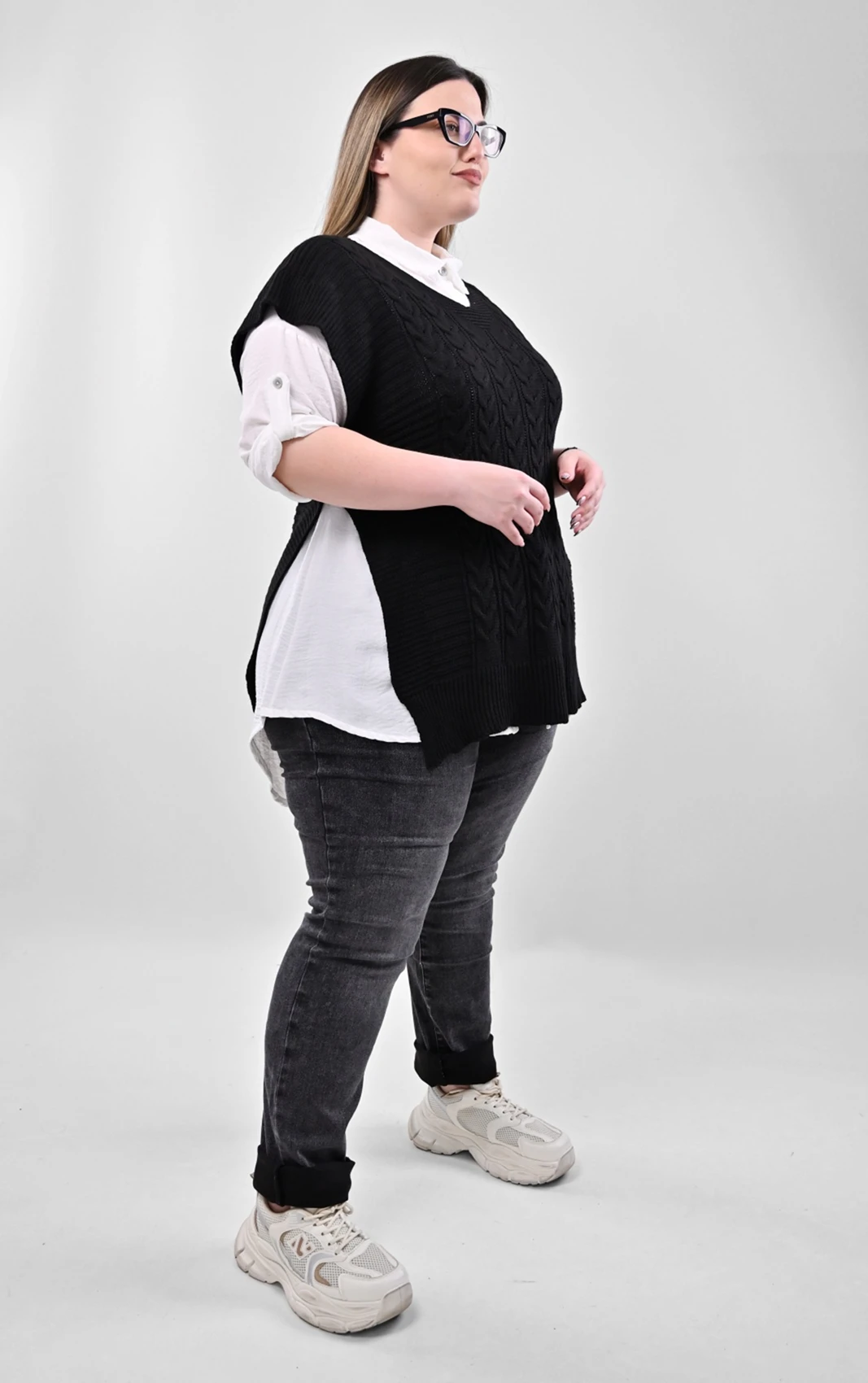 Αποκτήστε το απόλυτο μοντέρνο layered look με ένα μόνο κομμάτι. Αυτό το στυλάτο plus size σετ έχει σχεδιαστεί για να σας προσφέρει ένα έτοιμο, καλαίσθητο σύνολο χωρίς κόπο. Αποτελείται από δύο ξεχωριστά κομμάτια, φτιαγμένα για τέλεια εφαρμογή και άνεση.