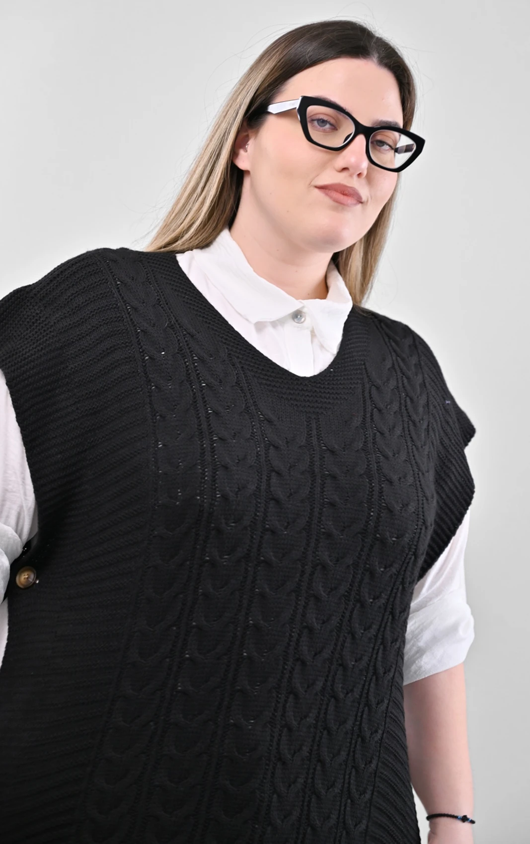 - Μια ποιοτική μαύρη πλεκτή καζάκα με όμορφη, ανάγλυφη πλέξη.