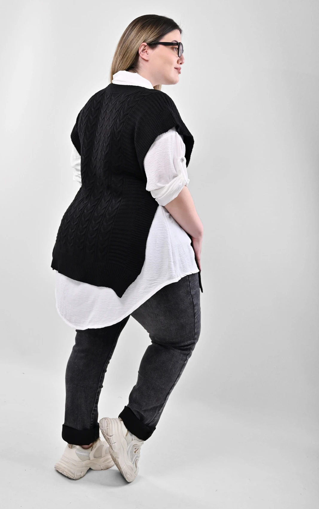 Σετ 2-τεμαχίων: Λευκό Πουκάμισο & Μαύρη Πλεκτή Καζάκα