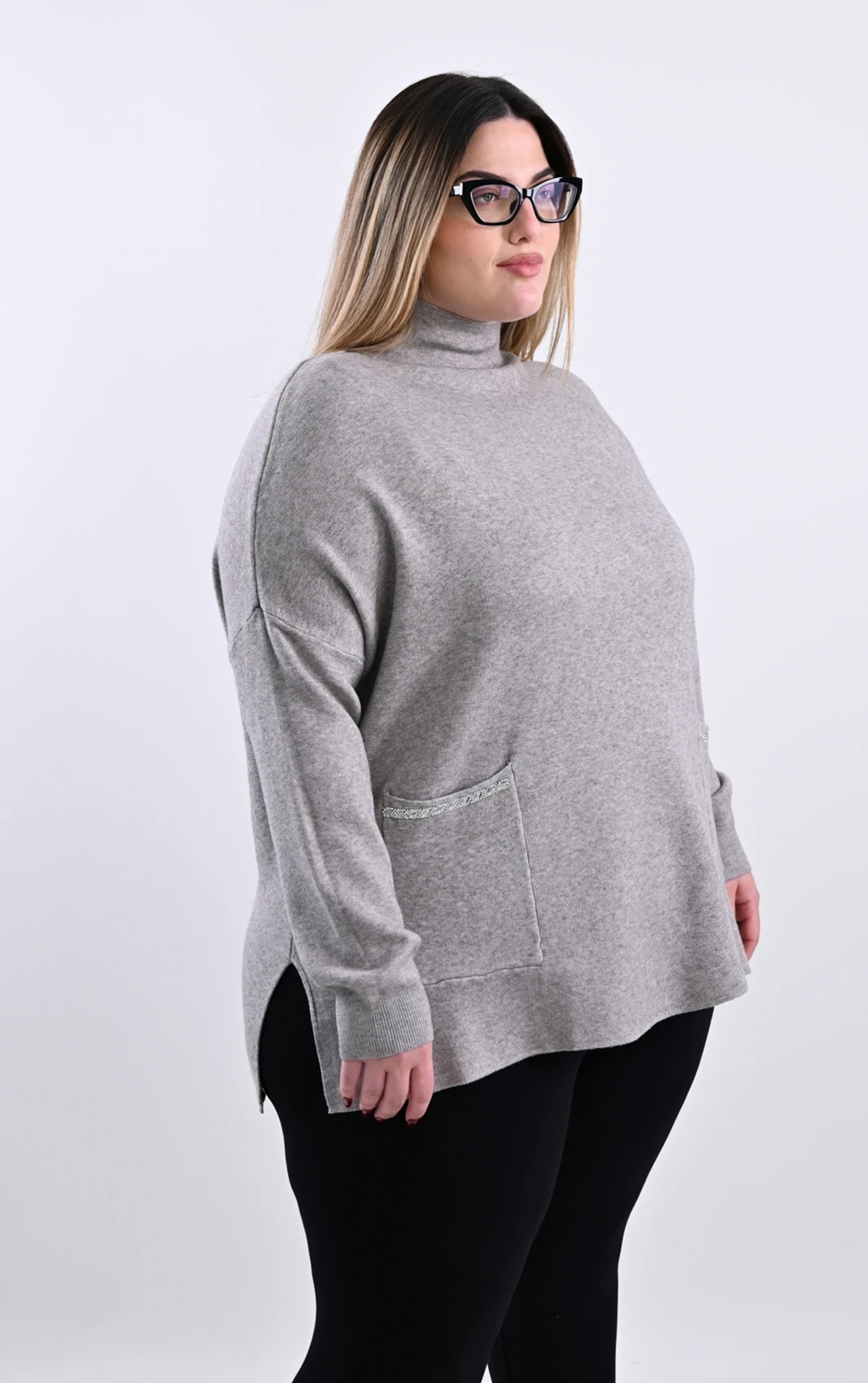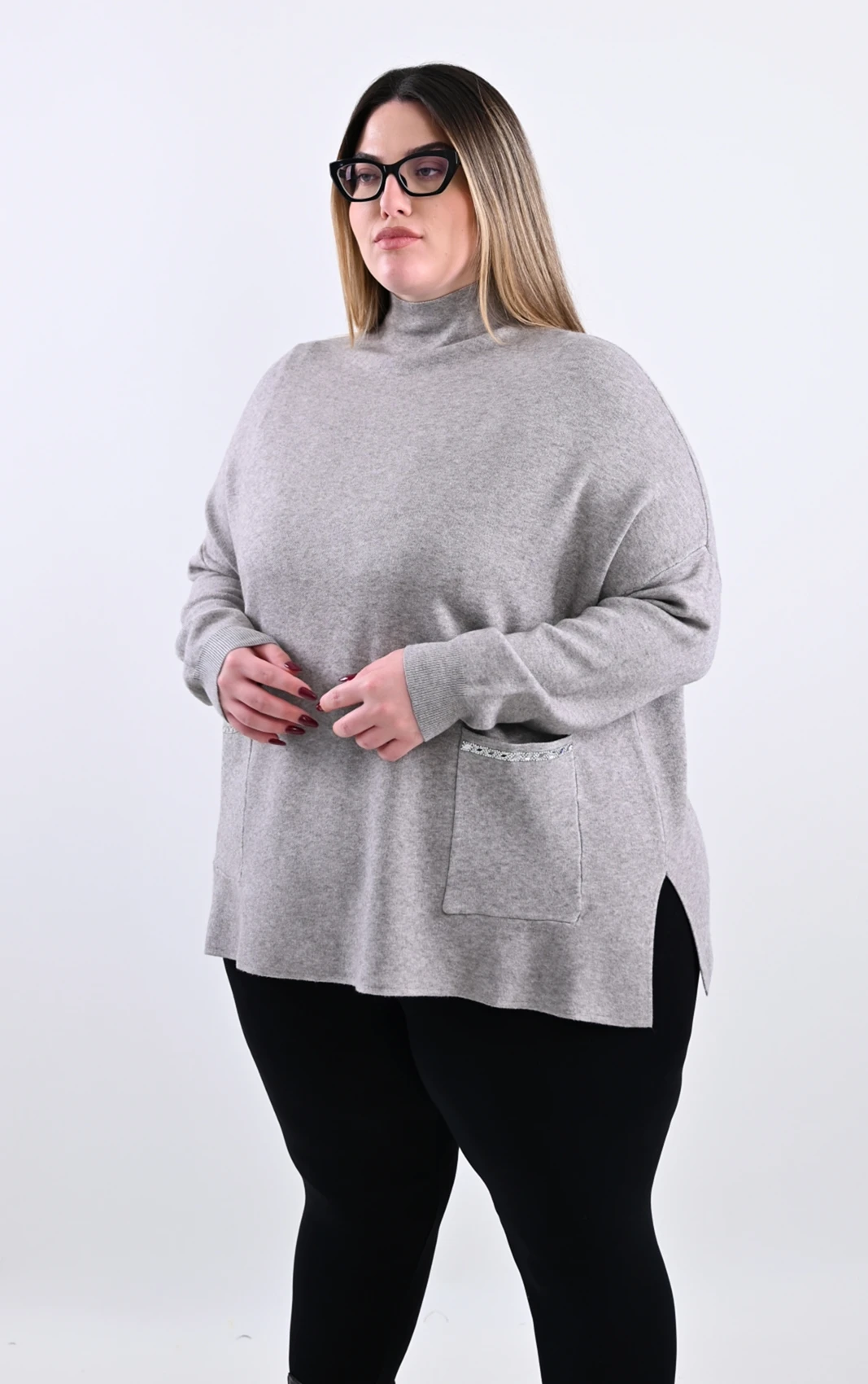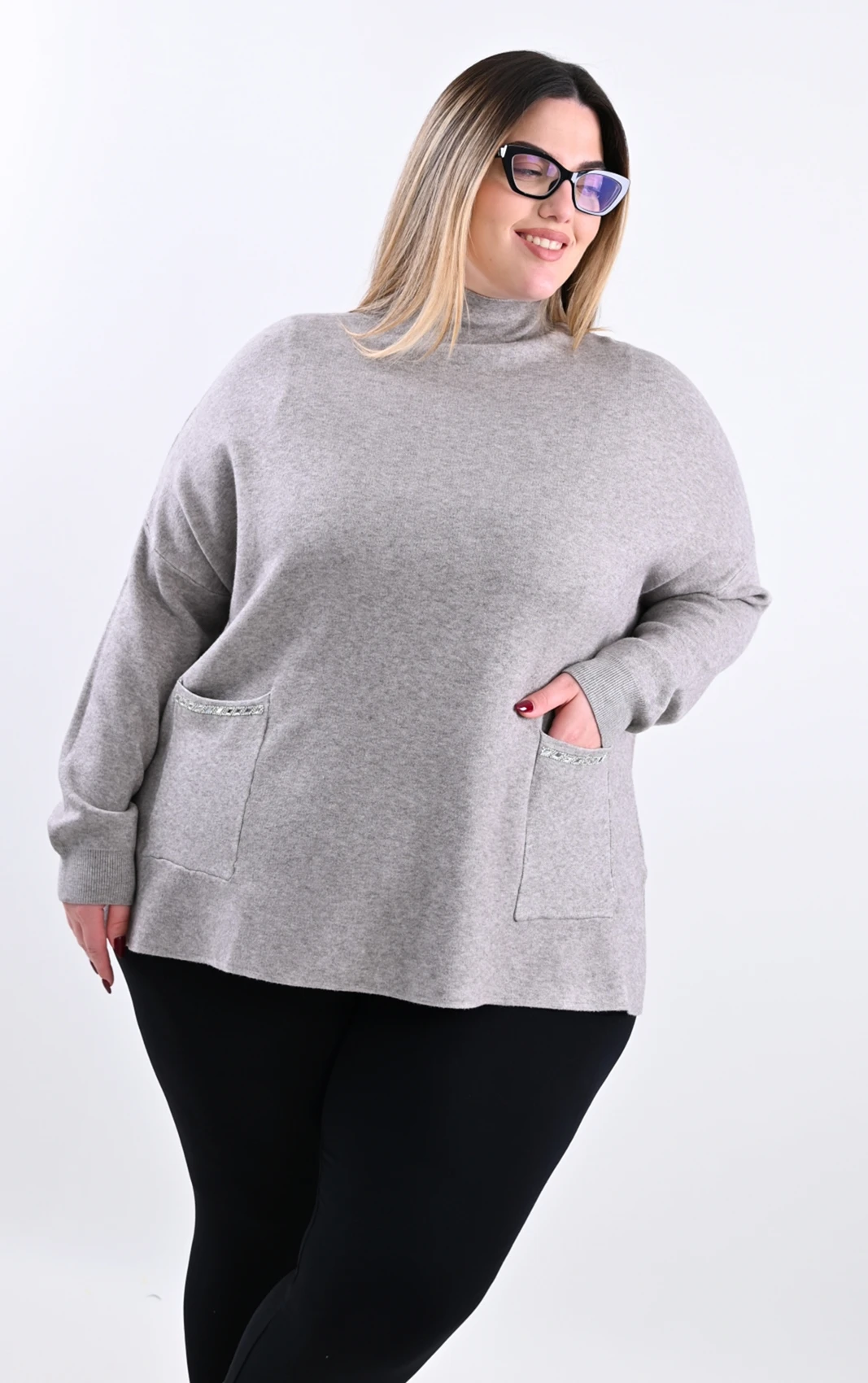 Συνδυάστε την άνεση με το μοντέρνο στυλ με αυτή την υπέροχη πλεκτή μπλούζα. Σχεδιασμένη σε μια άνετη, χαλαρή γραμμή που αγκαλιάζει όμορφα το σώμα χωρίς να το περιορίζει, είναι το ιδανικό κομμάτι για plus size σιλουέτες. Η μαλακή, ζεστή πλέξη της προσφέρει μια υπέροχη αίσθηση, κάνοντάς την την τέλεια επιλογή για τις κρύες μέρες.