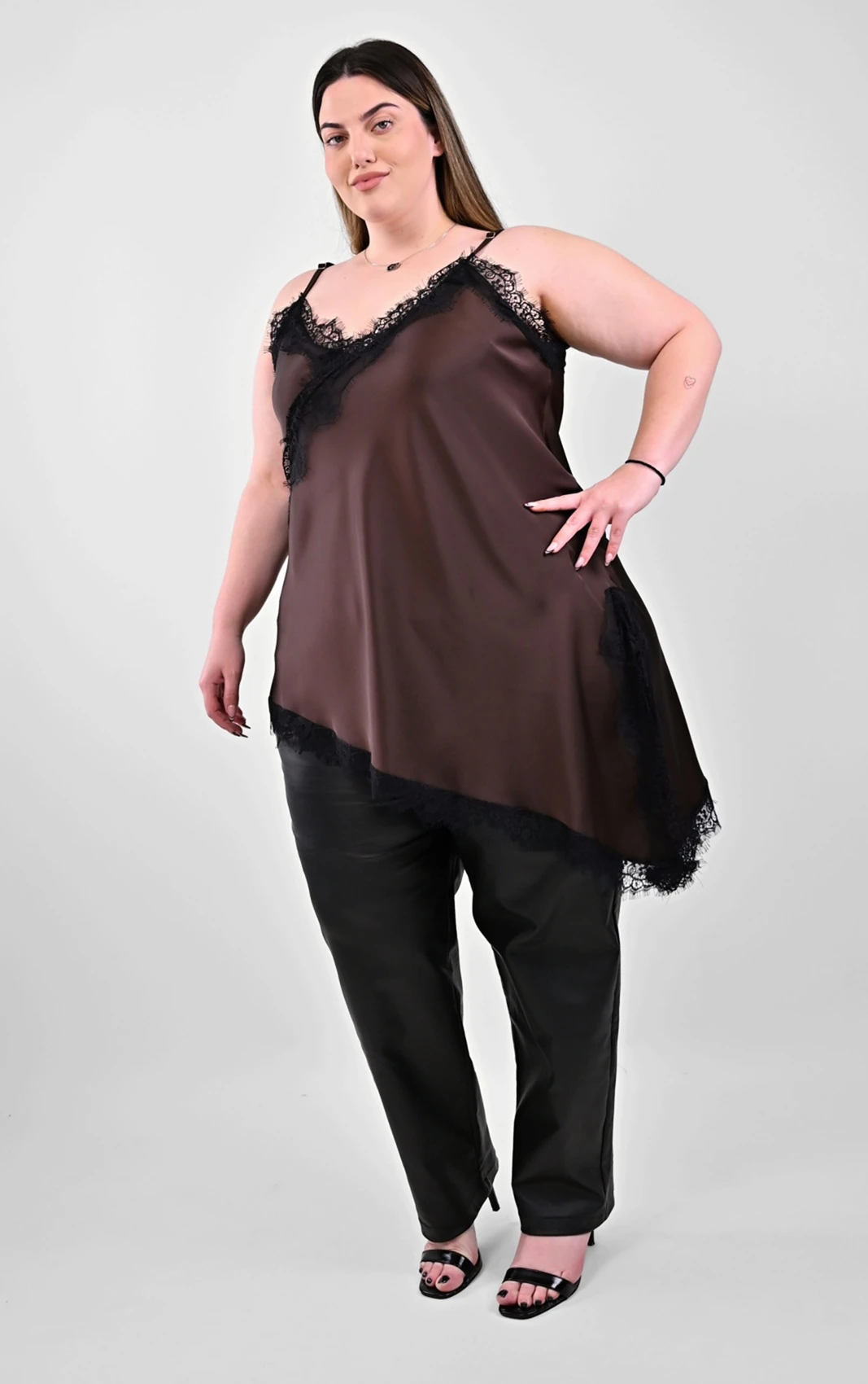 Ασύμμετρο Top Lingerie Καφέ με Δαντέλα