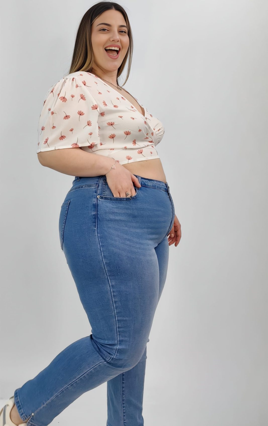 Plus size τζιν με στρας και μικρό άνοιγμα – Κομψότητα & Άνεση