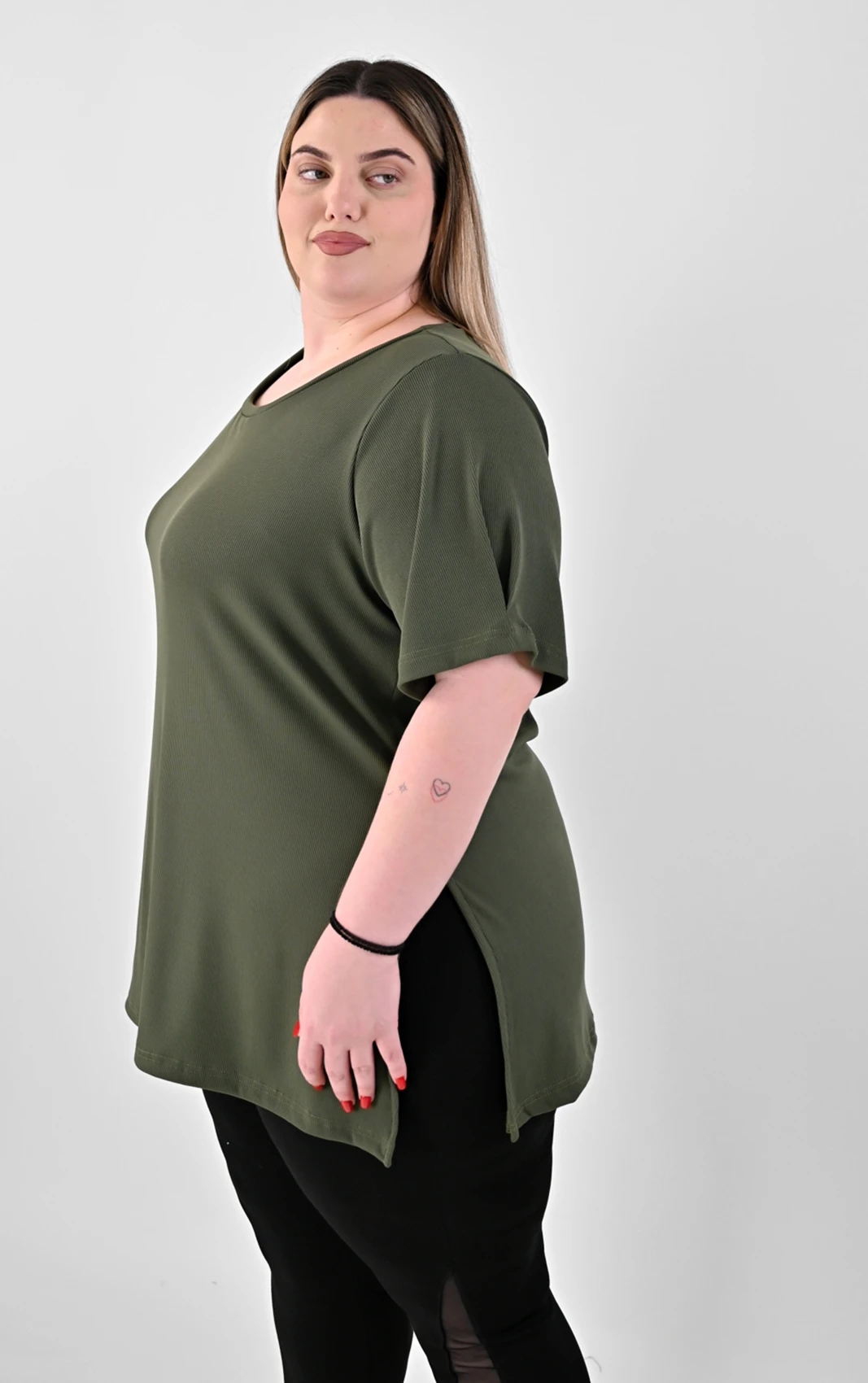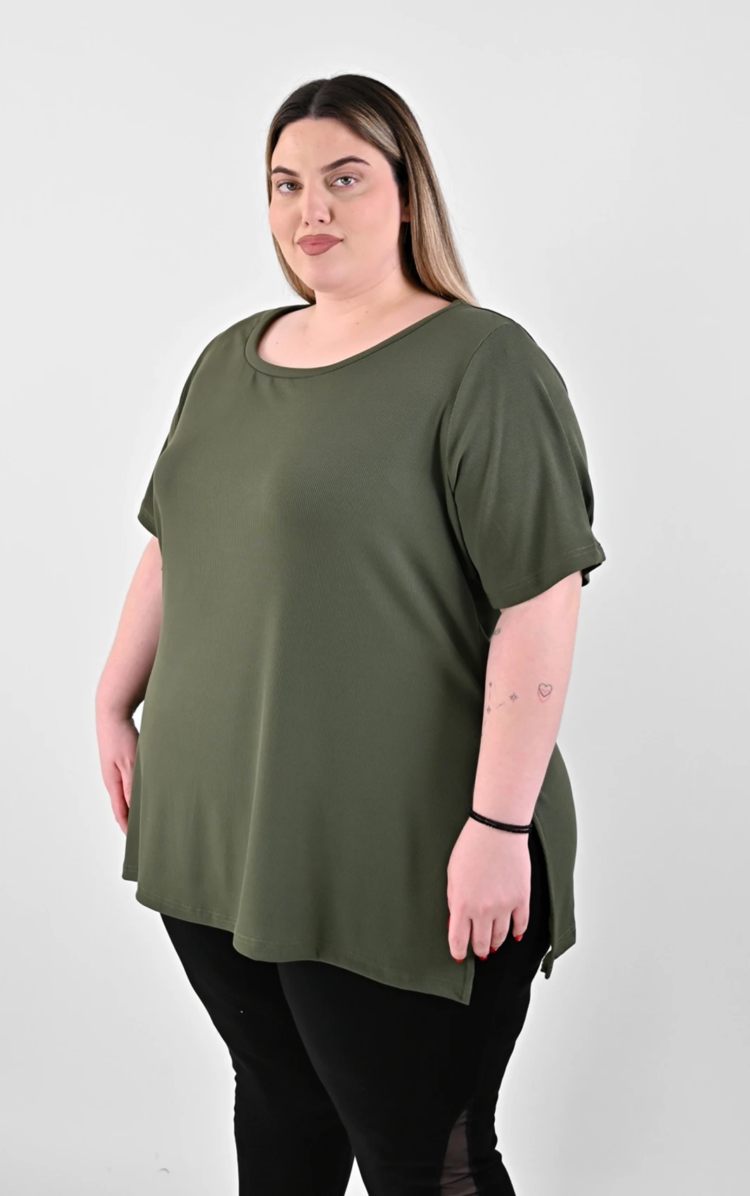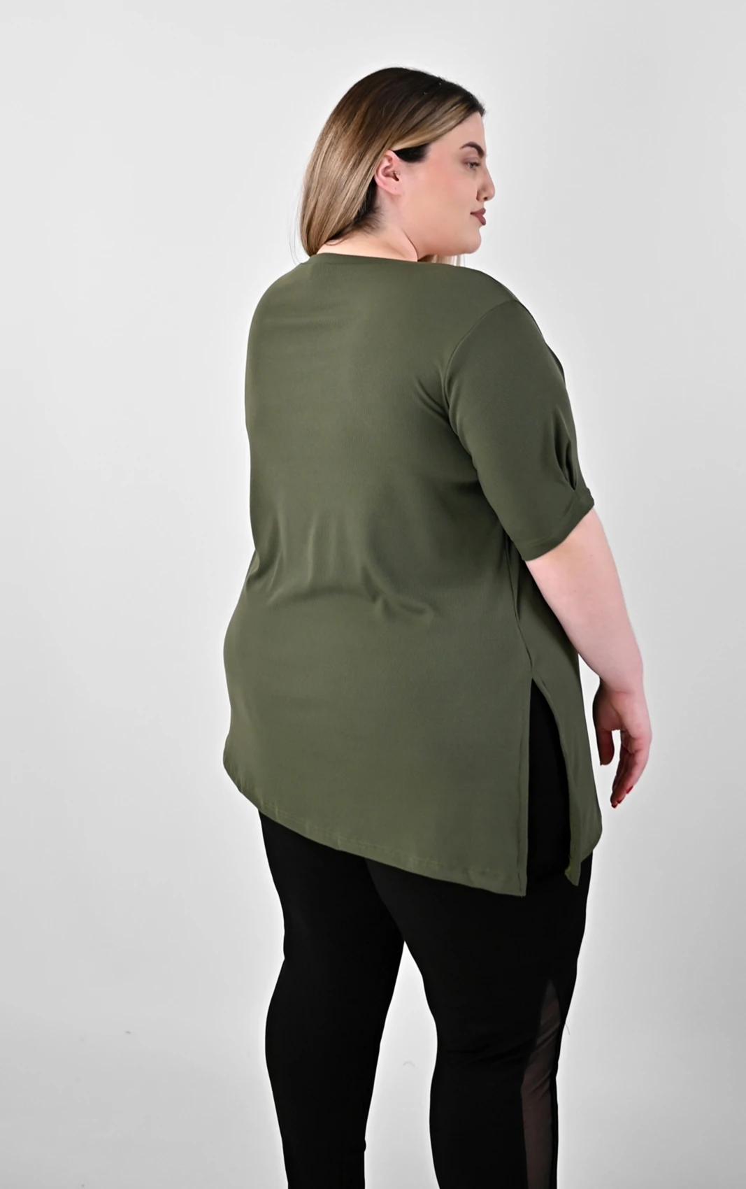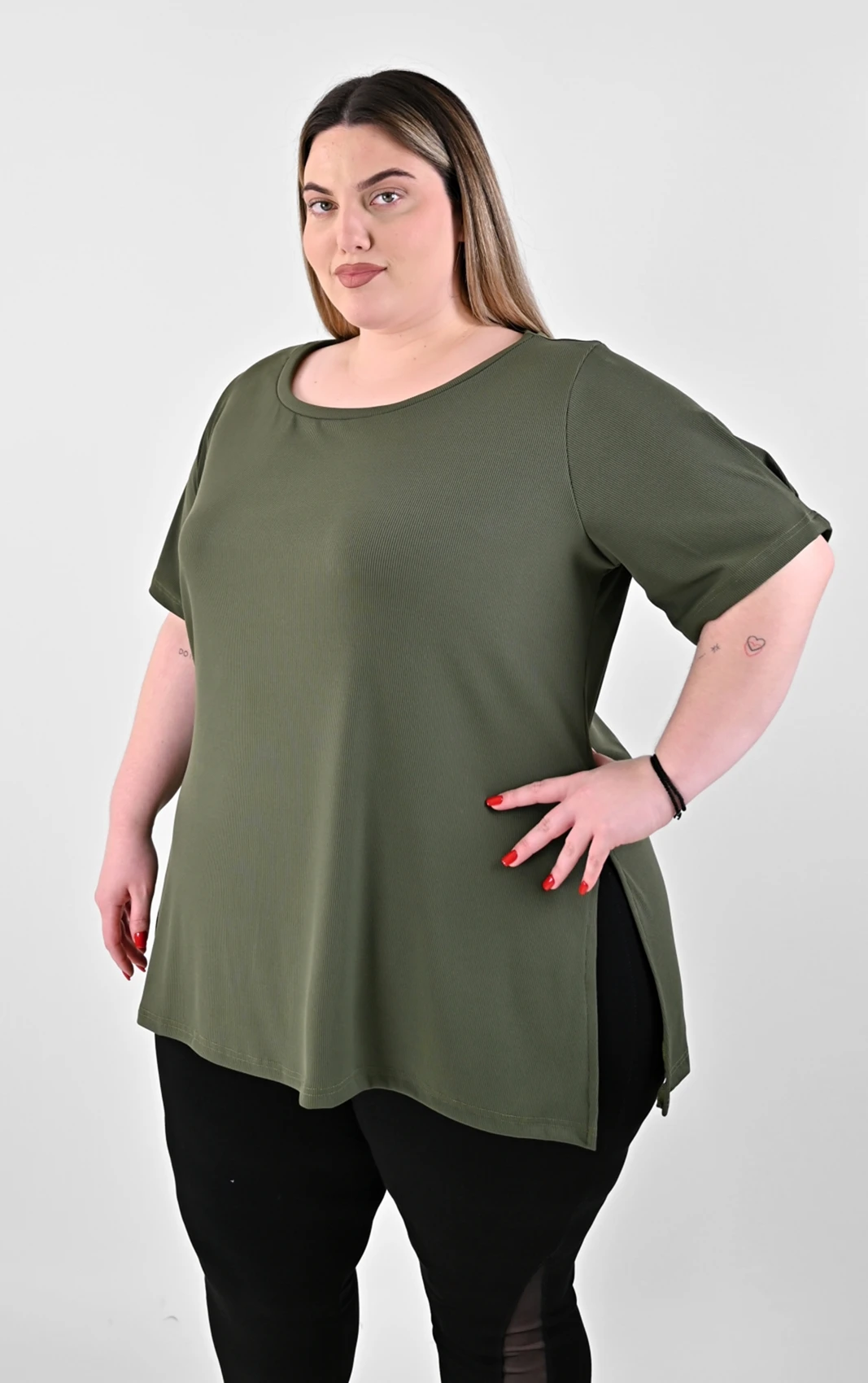 - Πώς στρώνει στα πλάγια; Τα ανοίγματα στο πλάι έχουν σχεδιαστεί έτσι ώστε η μπλούζα να μην “τραβάει” στους γοφούς όταν κάθεστε ή περπατάτε, προσφέροντας άνεση και σωστή εφαρμογή.