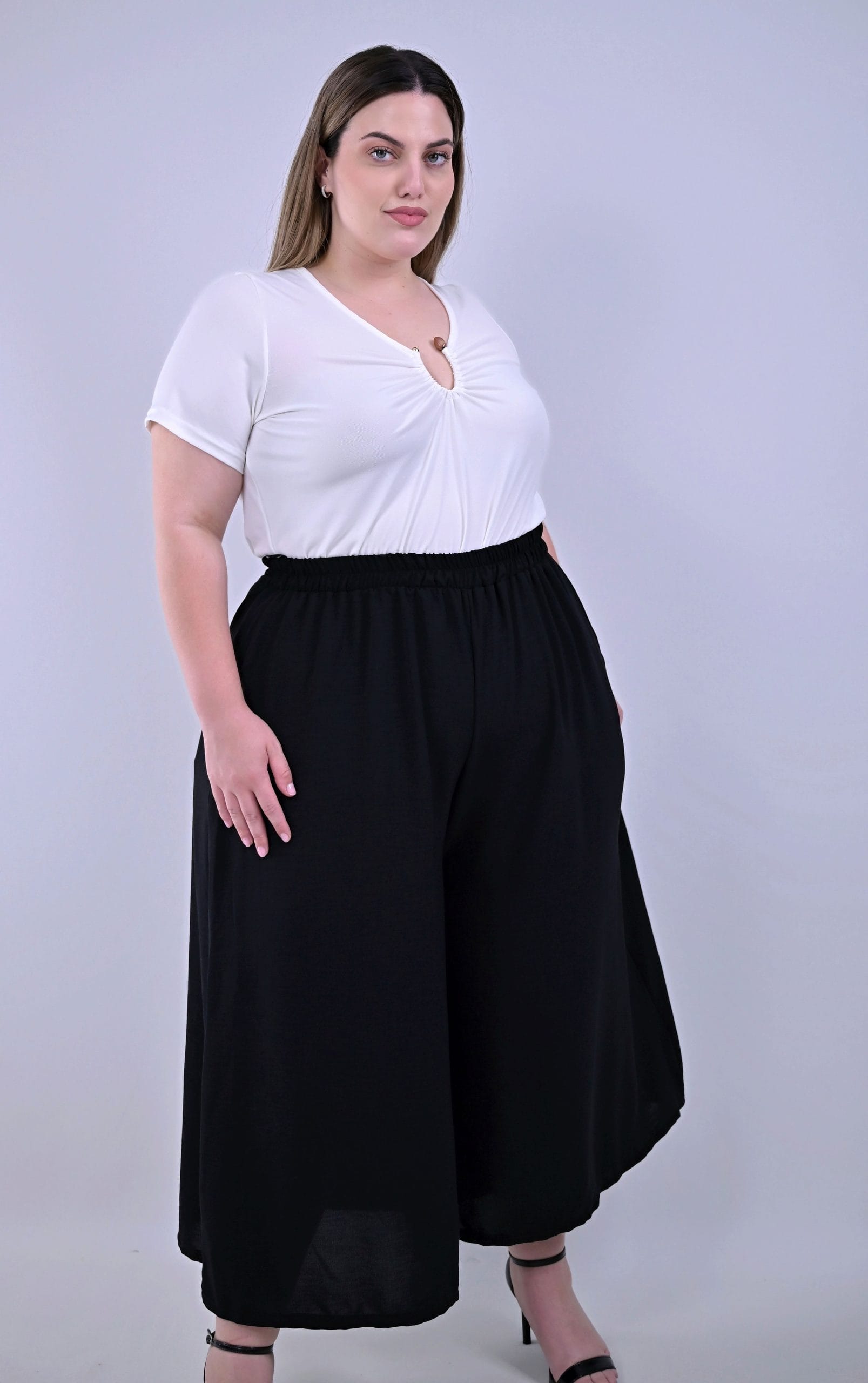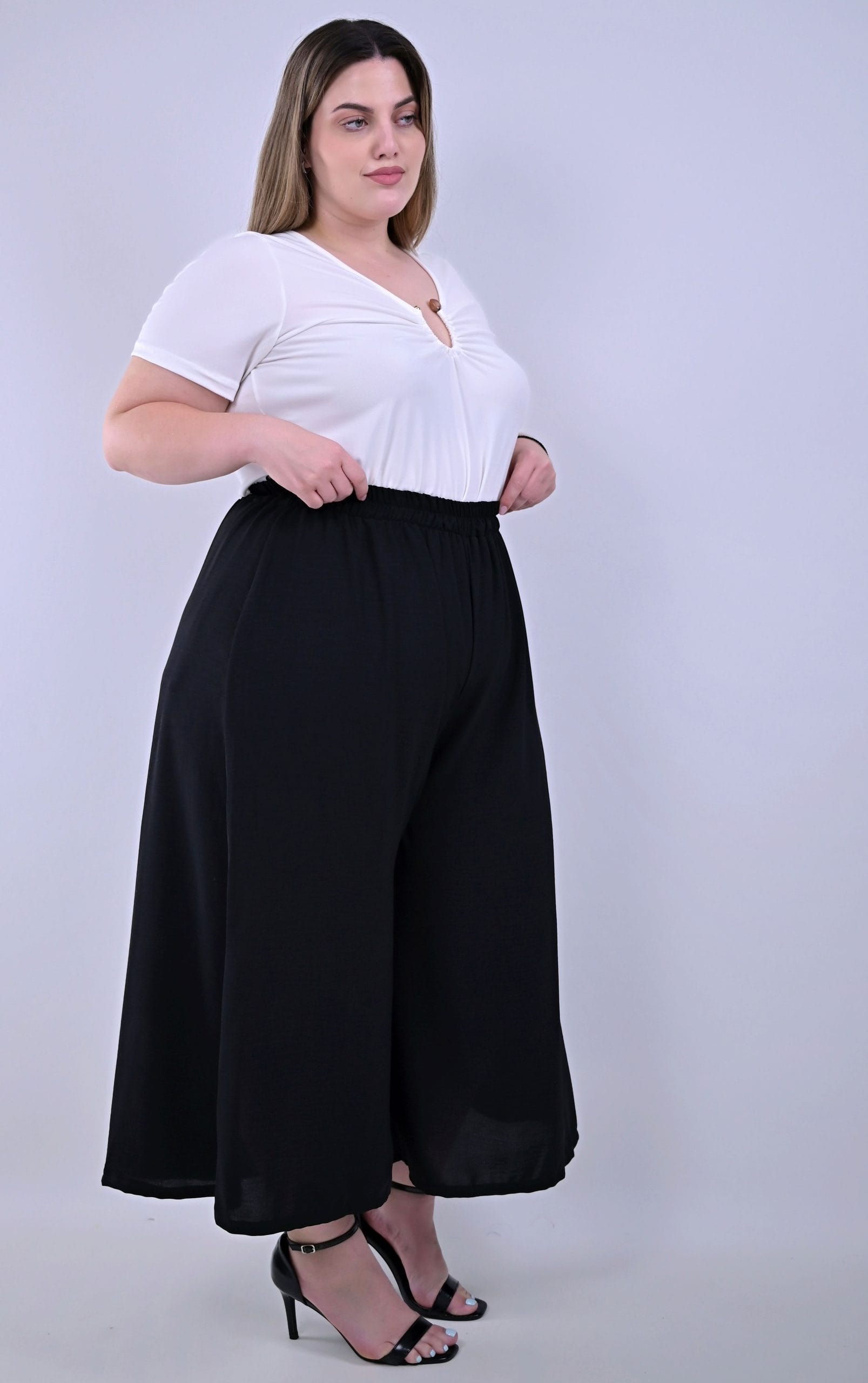 Αποκτήστε αυτή την plus size μαύρη ζιπ κιλότ και απολαύστε την τέλεια ισορροπία μεταξύ άνεσης και μοντέρνου στυλ!