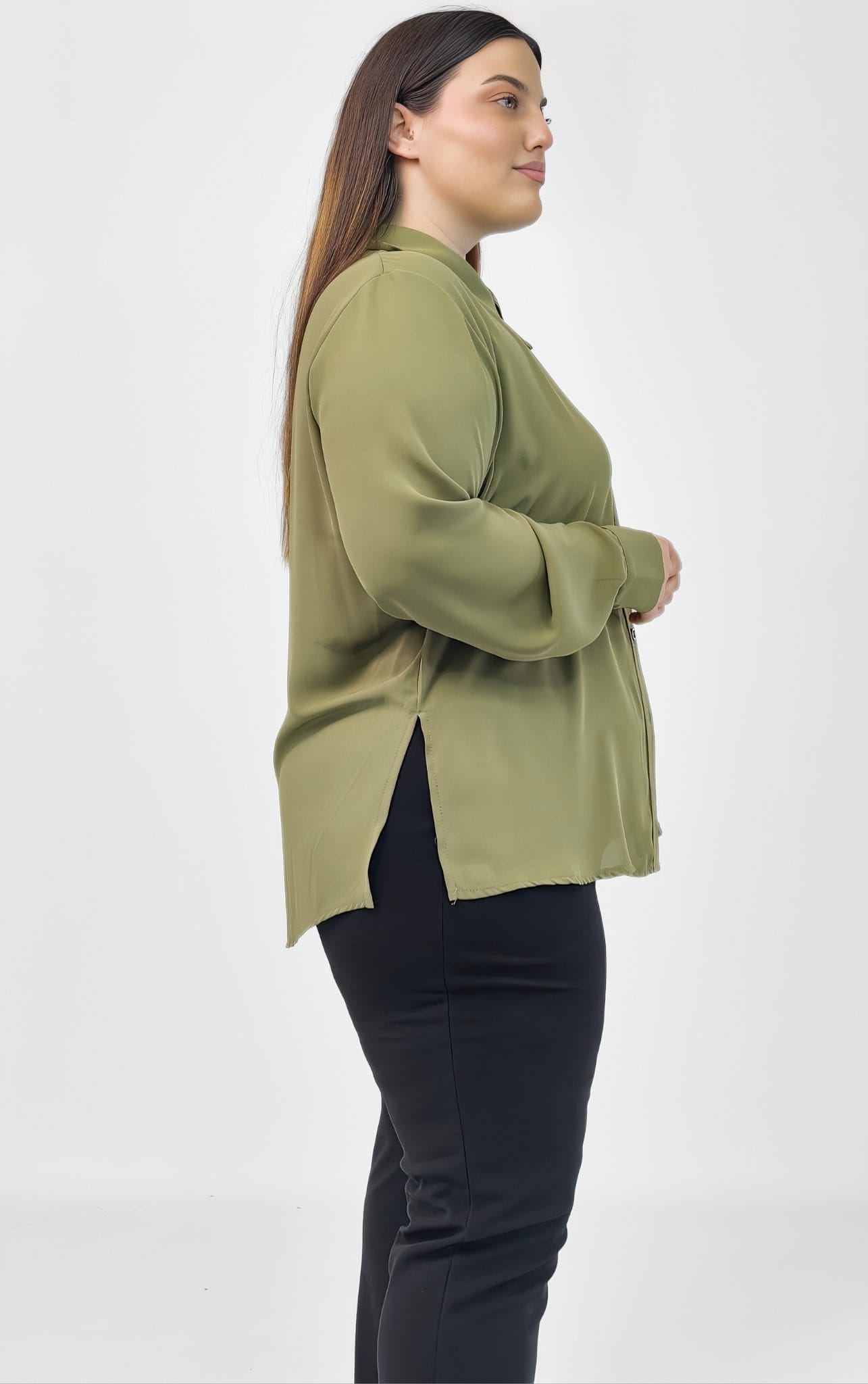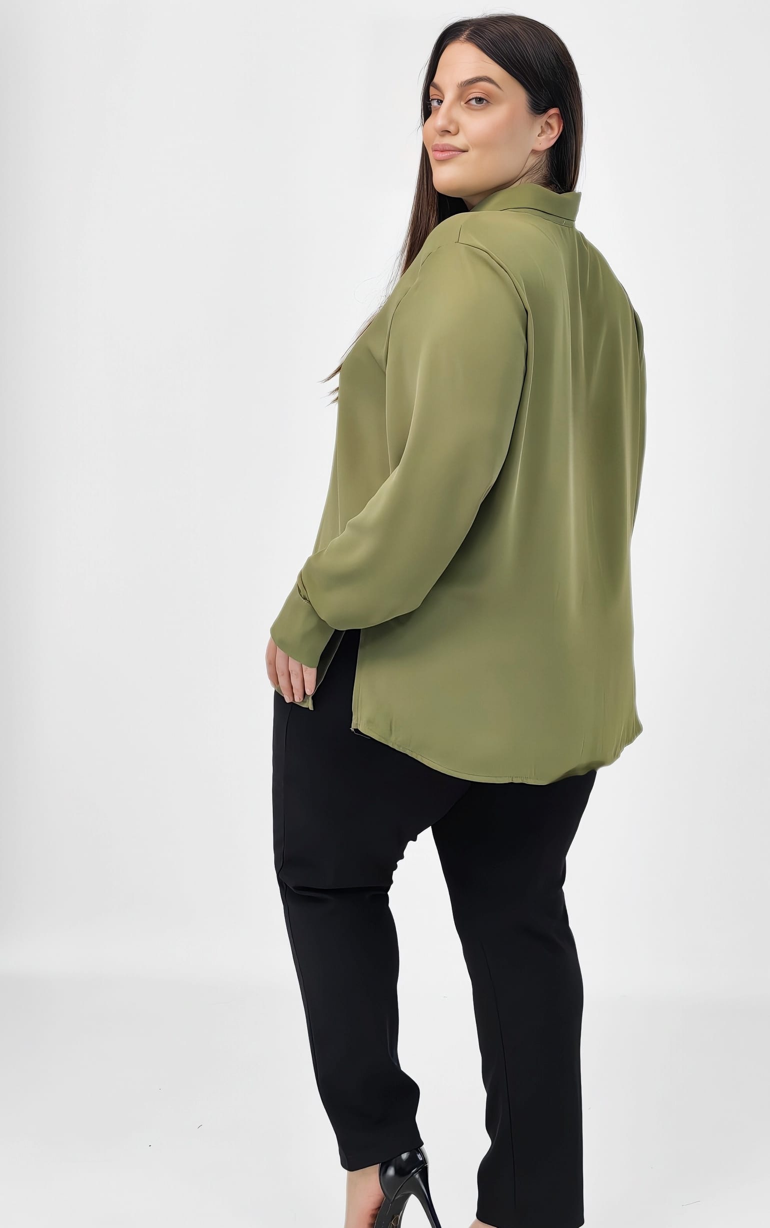 Plus size πουκάμισο ζορζέτα χακί , ιδανικό για κομψές και μοντέρνες εμφανίσεις. Σχεδιάσαμε αυτό το πουκάμισο σε κλασική γραμμή με γιακά, προσφέροντας διαχρονικό στυλ και ευελιξία. Το σχέδιο σε συνδυασμό με τις μπεζ αποχρώσεις προσθέτει μοντέρνα αίσθηση στο ντύσιμό σας.