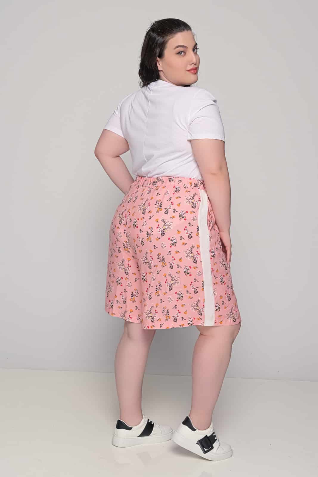 Κατασκευασμένο από ποιοτικό, μαλακό ύφασμα που είναι δροσερό και ευχάριστο στο δέρμα, αυτό το σορτς είναι ιδανικό για τις καθημερινές σας δραστηριότητες. Η άνετη plus size γραμμή του συνδυάζεται άψογα με την ασορτί ροζ ζώνη που τονίζει διακριτικά τη μέση. Η λεπτομέρεια που το κάνει να ξεχωρίζει είναι η κομψή λευκή ρίγα στο πλάι, που δημιουργεί μια όμορφη αντίθεση και προσθέτει μια σπορ νότα στο σύνολο.