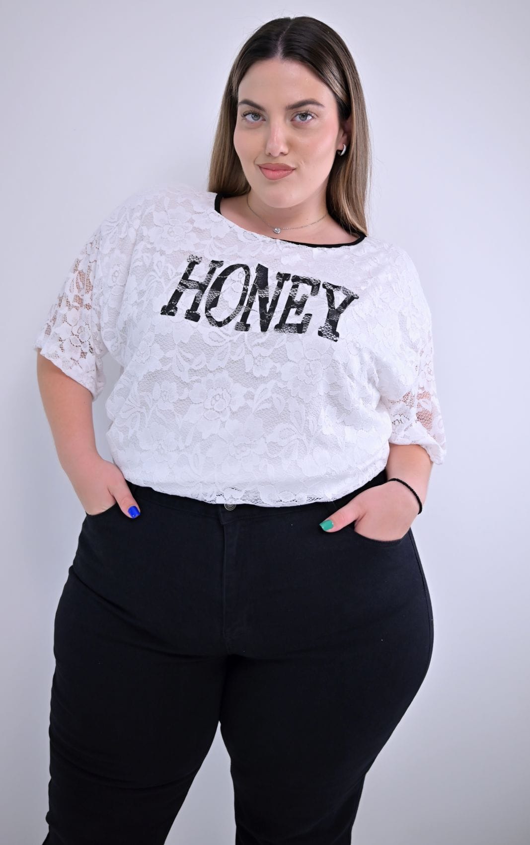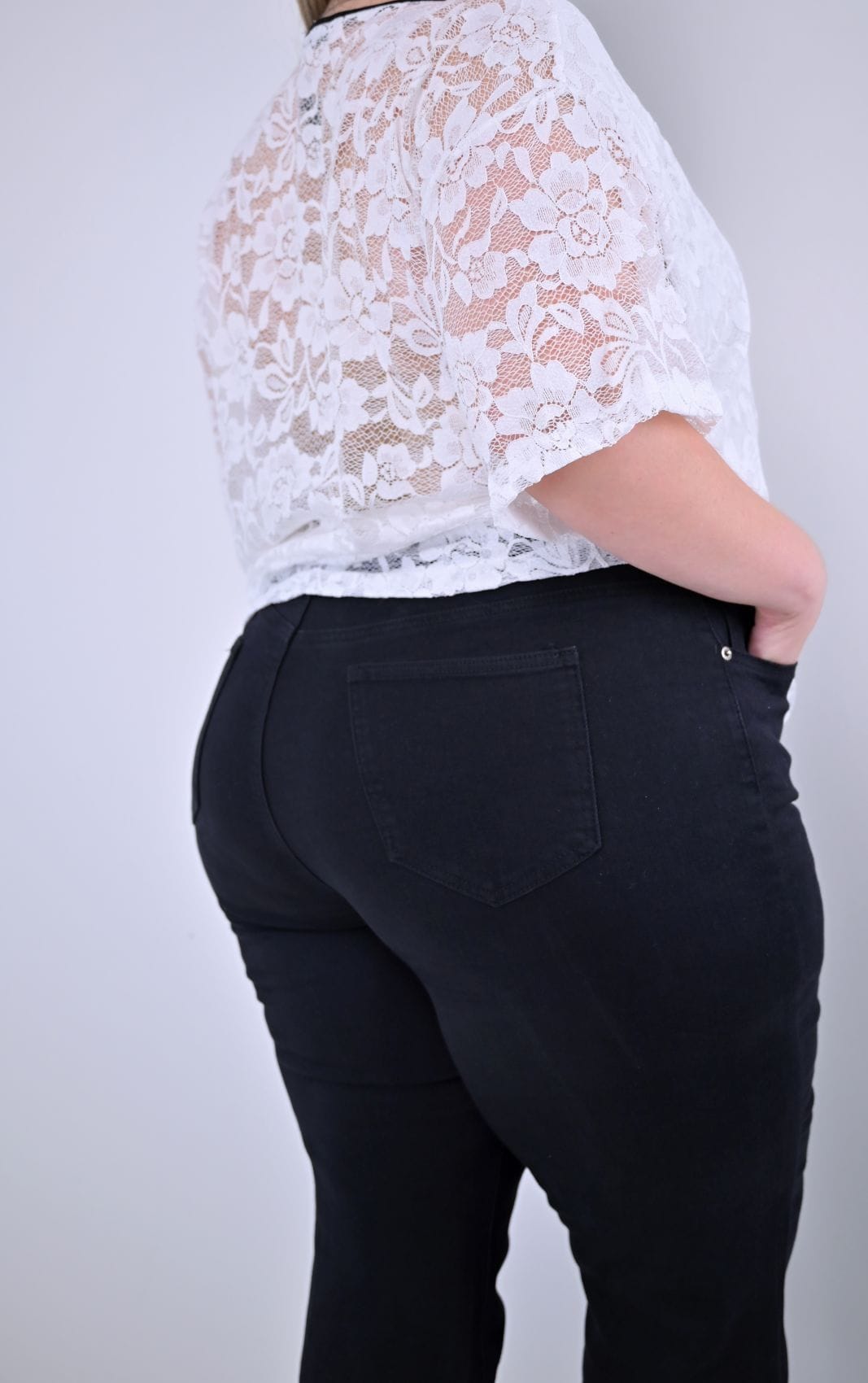 Το μαύρο τζιν σε μεγάλα μεγέθη είναι η απόλυτη βάση για αμέτρητα σύνολα. Φορέστε το από το πρωί μέχρι το βράδυ, αλλάζοντας απλώς τα αξεσουάρ.