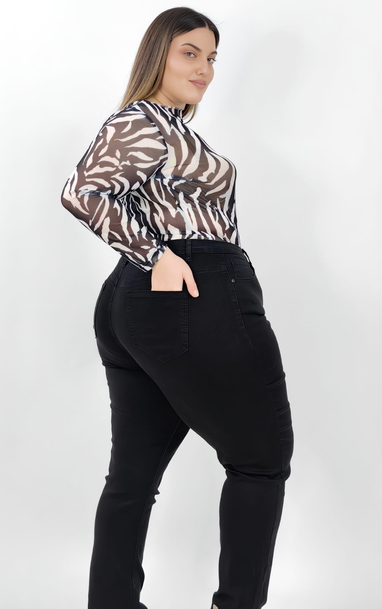 Αναδείξτε την σιλουέτα σας με το απόλυτο plus size ψηλόμεσο μαύρο τζιν. Σχεδιασμένο για να προσφέρει άψογη εφαρμογή και μέγιστη άνεση, αυτό το παντελόνι θα γίνει η πρώτη σας επιλογή για κάθε εμφάνιση, από την πιο απλή μέχρι την πιο προσεγμένη.