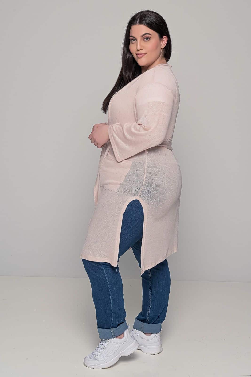 Αυτή η plus size μακριά πλεκτή ζακέτα στην πιο γλυκιά απόχρωση του ροζ είναι το απόλυτο κομμάτι για να αγκαλιάσετε τις κρύες μέρες με ζεστασιά και στυλ. Είναι το ιδανικό πανωφόρι για να δημιουργήσετε άνετα, cozy σύνολα, χωρίς να χάνετε την θηλυκότητά σας.